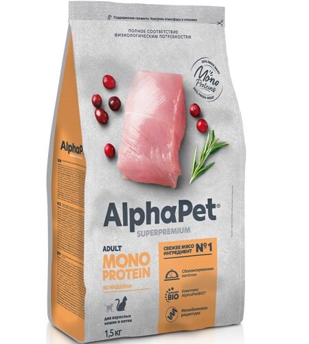 Сухой корм для кошек AlphaPet Superpremium с индейкой, 1,5 кг