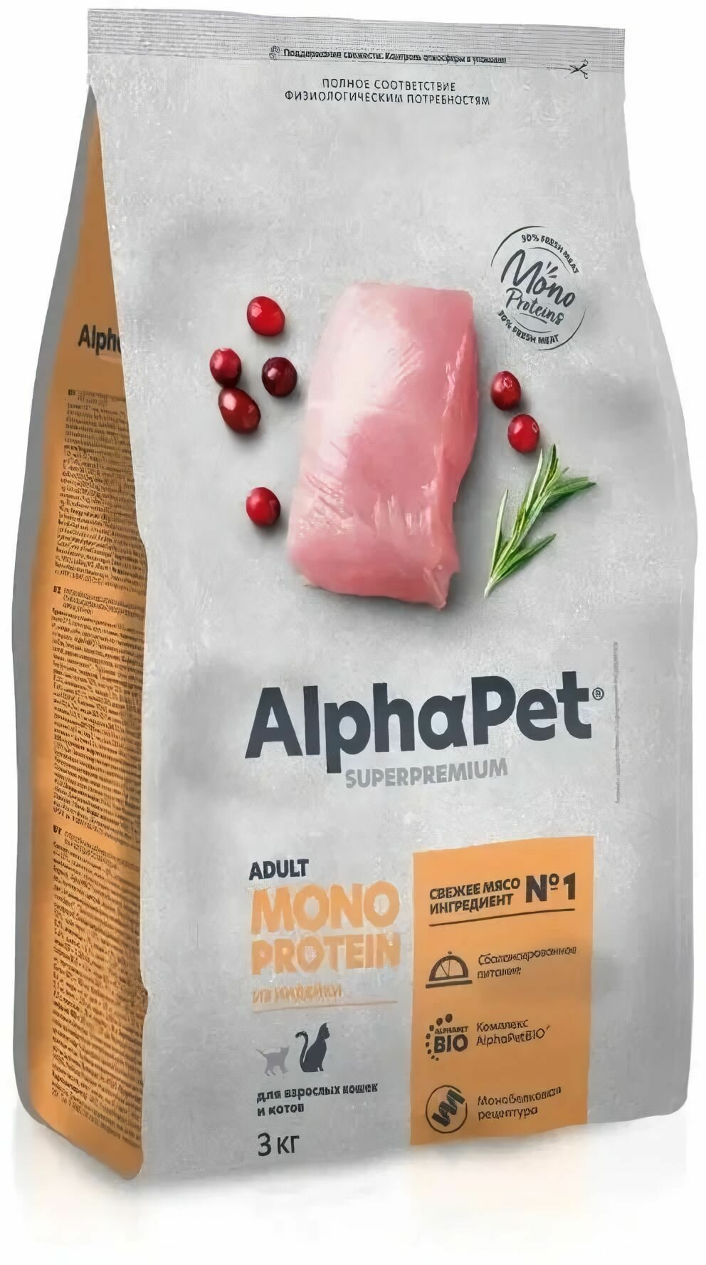 Купить AlphaPet Superpremium Monoprotein сухой корм для взрослых кошек с индейкой - 3 кг