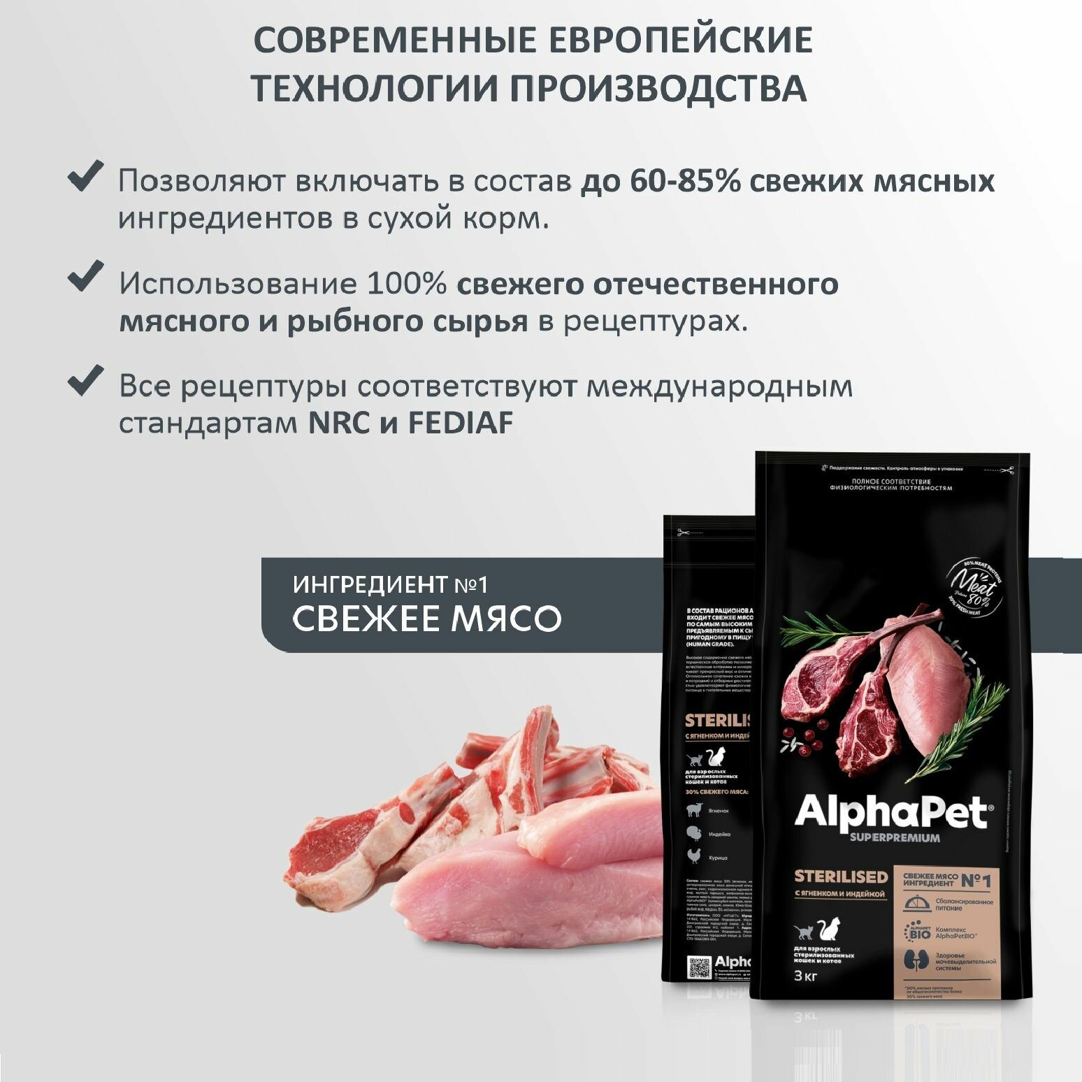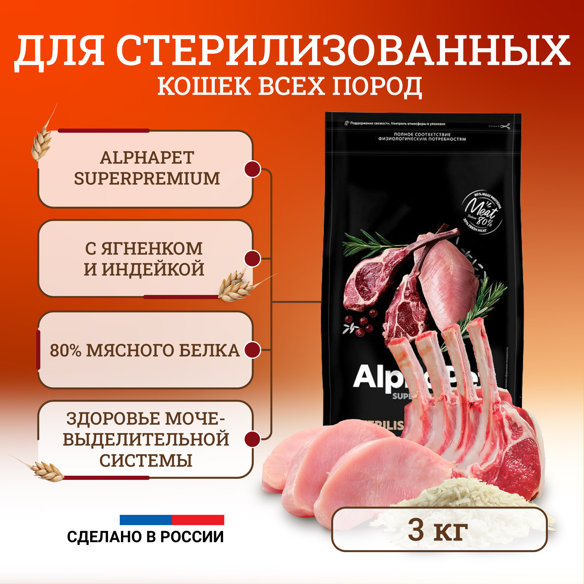 ALPHAPET SUPERPREMIUM STERILISED для взрослых кастрированных котов и стерилизованных кошек с ягненком и индейкой (3 кг)