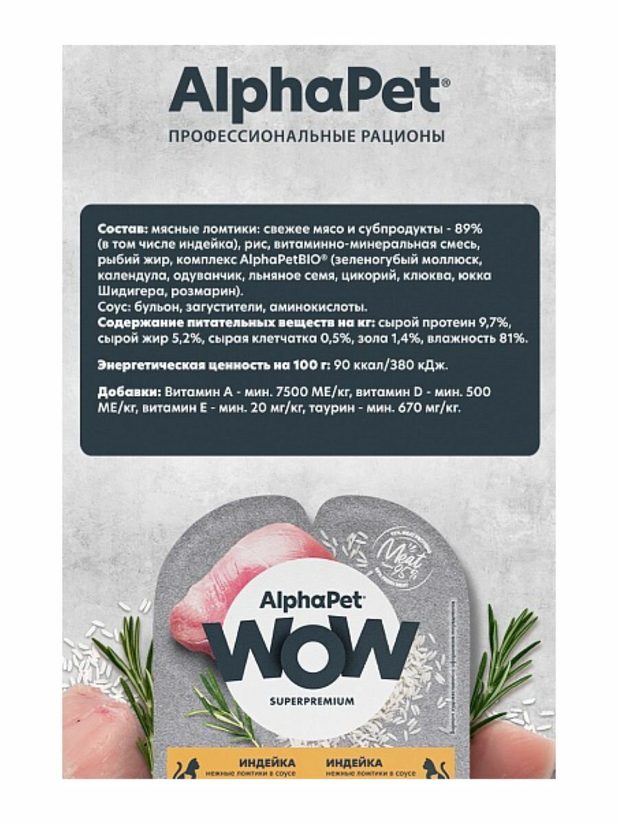 Купить Влажный корм АльфаПет для котят и кормящих кошек Индейка 80гр.*15 шт