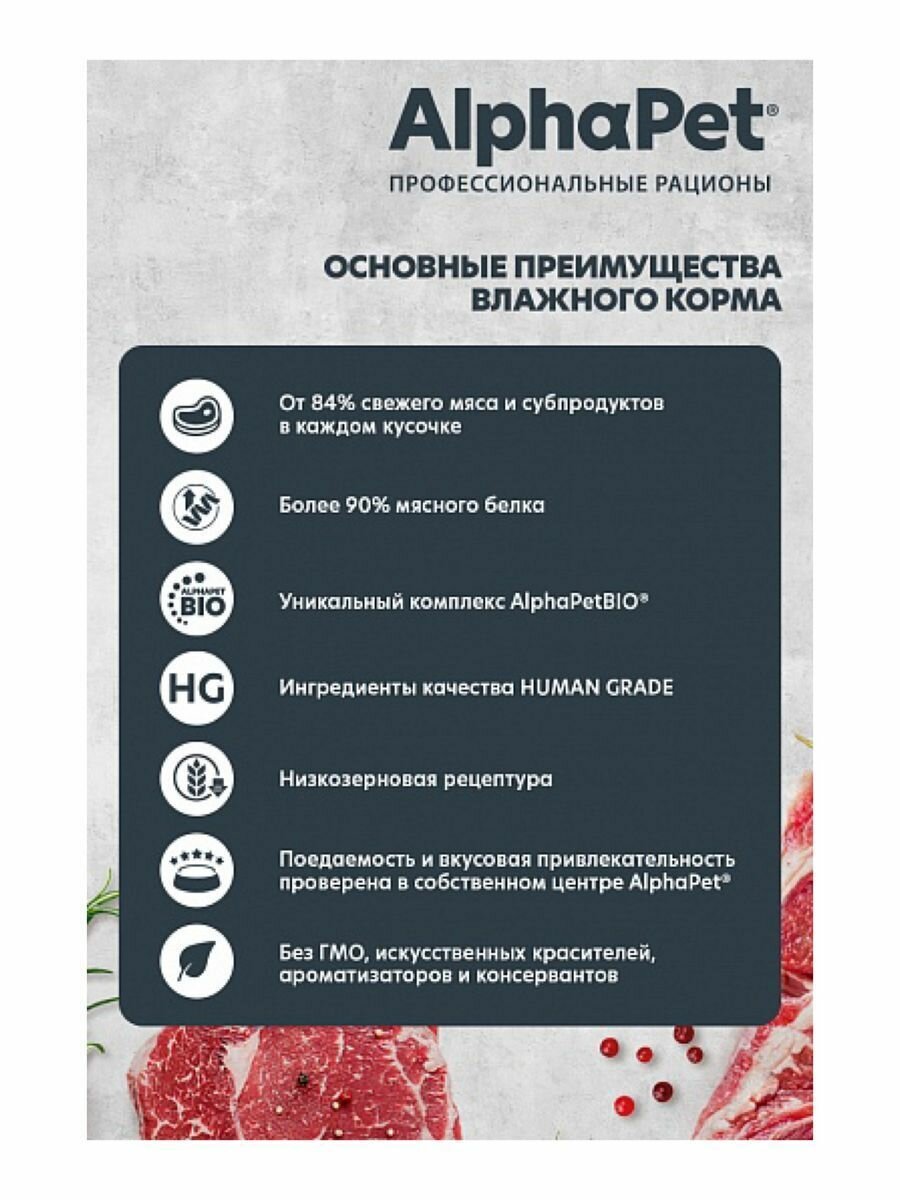 Влажный полнорационный корм AlphaPet Superpremium для кошек с говядиной и малиной в соусе 80г