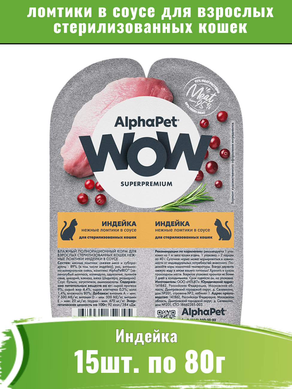 Купить AlphaPet WOW 15шт по 80г нежные ломтики в соусе для стерилизованных кошек