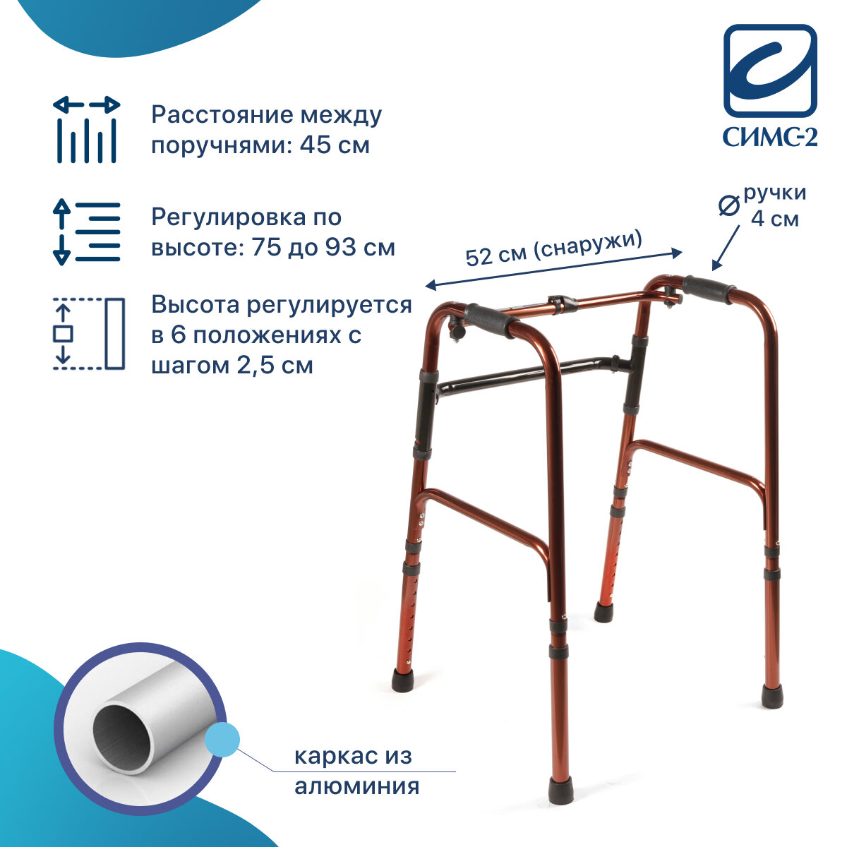 Опоры-ходунки W Navigator 66-81 см ходунки с шагом/без шага (бронза)/Ходунки для инвалидов, пожилых людей медицинские