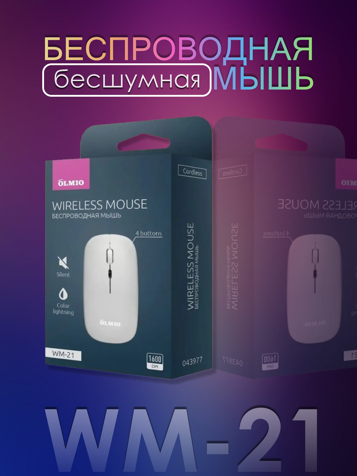 Мышь Olmio беспроводная тихая с подстветкой WM-21 (белый)