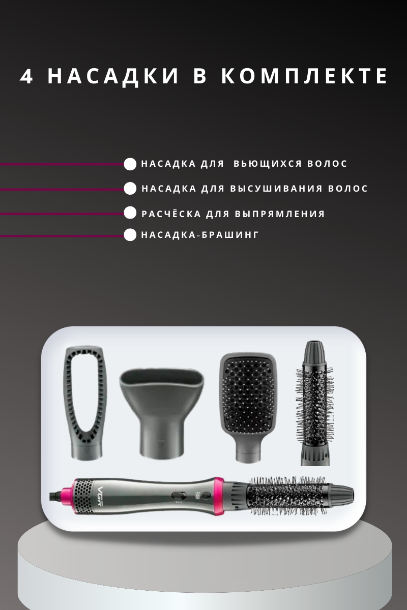 Термощетка, Фен-щетка для волос VGR V-408, 4 насадки, Стайлер для укладки 4в1