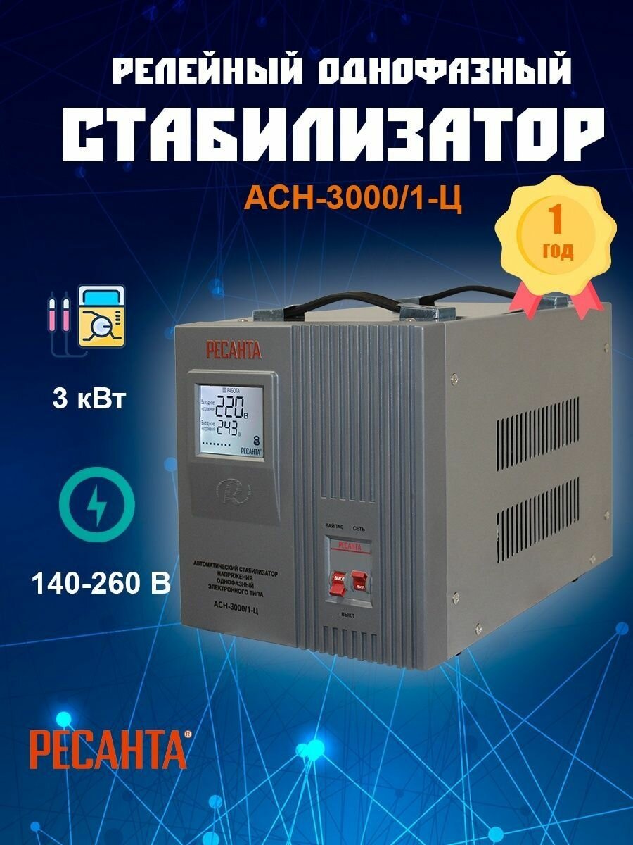 Стабилизатор напряжения АСН-3000/1-Ц 220В, 3000 Вт, релейный с цифр. диспл., Ресанта интересное: