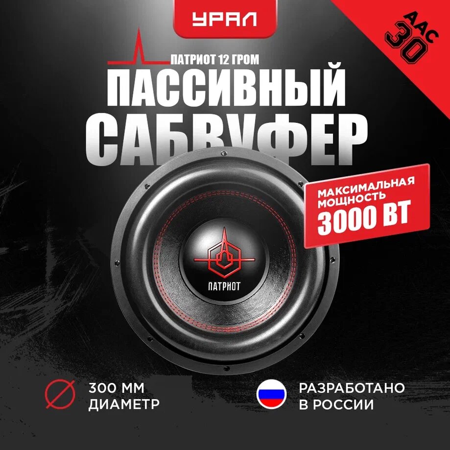 Пассивный автомобильный сабвуфер урал Патриот 12 Гром, 3000Вт, 84дБ, 4Ом, 12 дюймов (30 см)