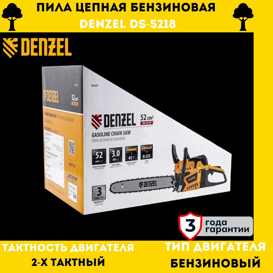 Пила цепная бензиновая Denzel DS-5218 шина 45 см, 52см3, 3 л.с., шаг 0, 325, паз 1, 5 мм, 72 зв 95237