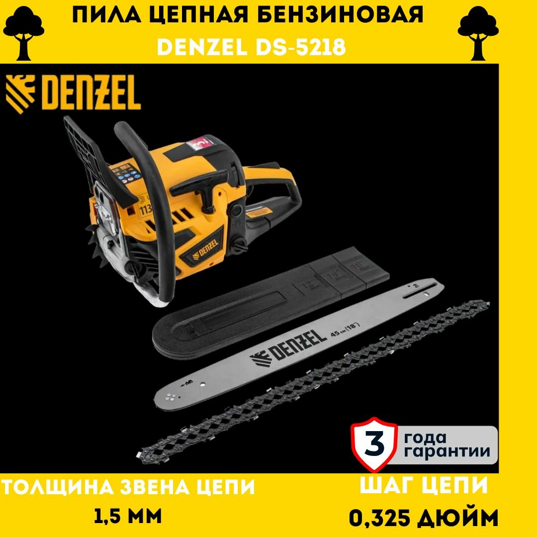 Пила цепная бензиновая DENZEL DS-5218, шина 45 см, 52 см3, 3 л.с, шаг 0,325, 72 звена