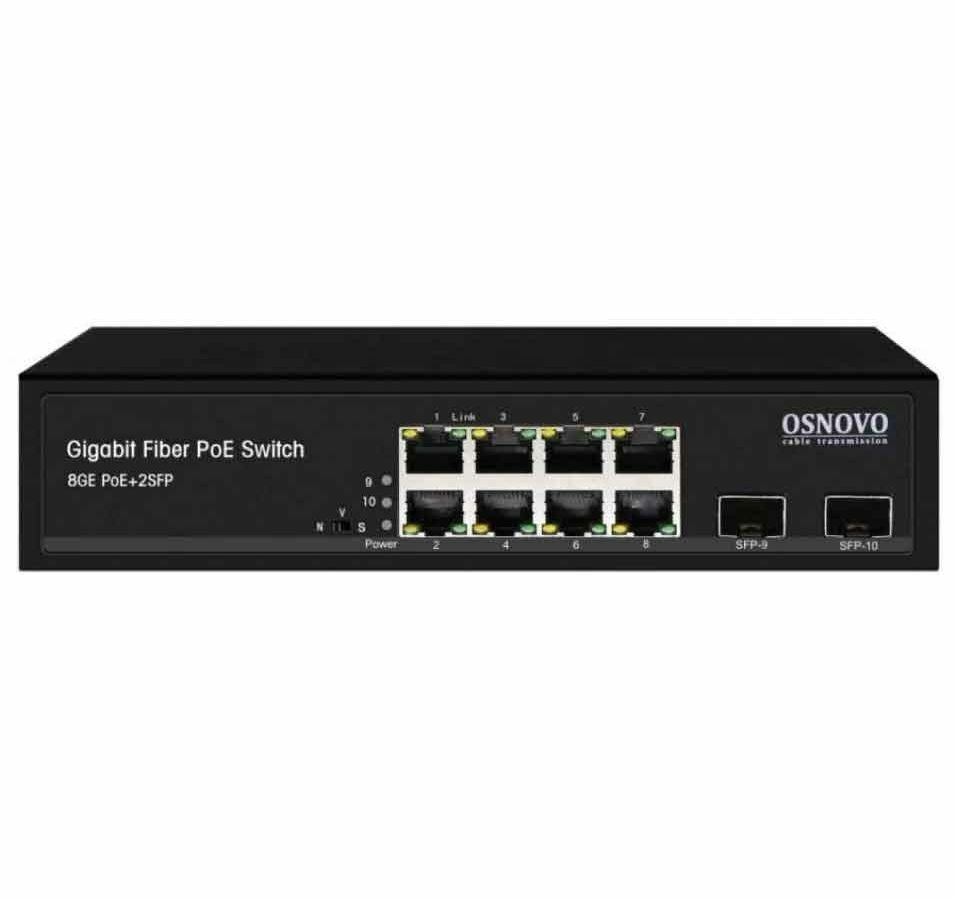 OSNOVO Гигабитный PoE коммутатор на 10 портов, 8 *10/100/1000 Base-T PoE, 2*SFP 1000 Base-T, PoE на