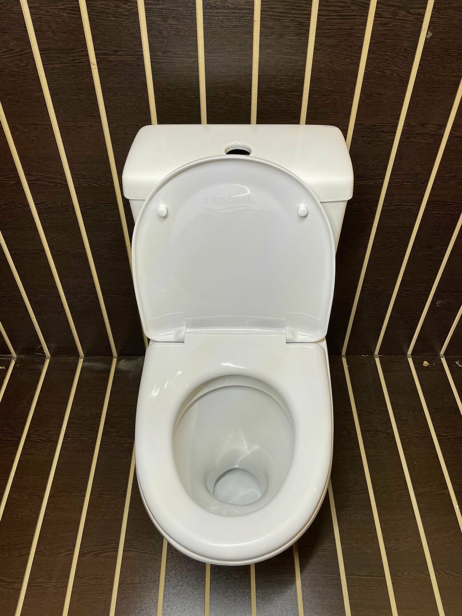 Фирма santeri форвард, именно такой мы решили купить, почему-то он нам сразу приглянулся. В нём всё лаконично и гармонично сочетается. Крышка расположена не впритык к стенке, поэтому держится здорово, не падает. Вода смывается отлично с первого раза уже вы ничего не найдете кнопка слива тоже чудно работает, прекрасное плавное нажатие. Теперь можно не бояться что сломаю ноготь, как с предыдущим белым троном было. Вода набирается без шумно, слив тоже, самая форма бочка квадратная, но с округлёнными углами. Мою унитаз стандартными средствами по уходу, ничего сверх естественного, не боится агрессивных средств. Бюджетная покупка, но гарантия более 10 лет от производителя считаю не плохой аргумент для покупки. Удобная форма, становится без особых усилий, удобно убирать вокруг него. |