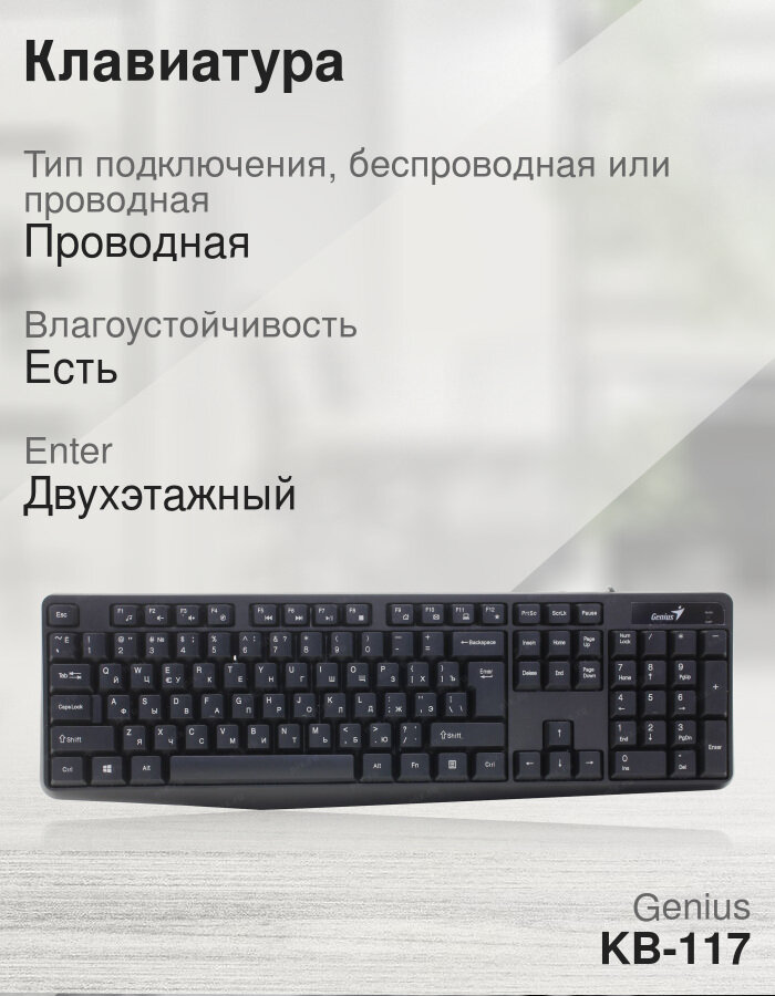 Купить Клавиатура Genius KB-117, USB, черная