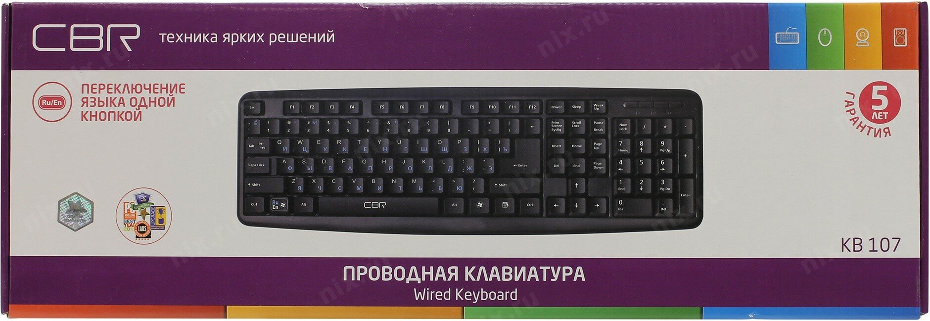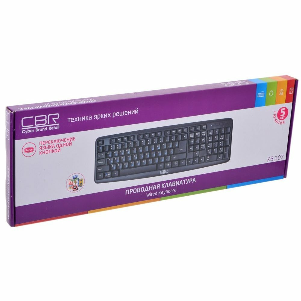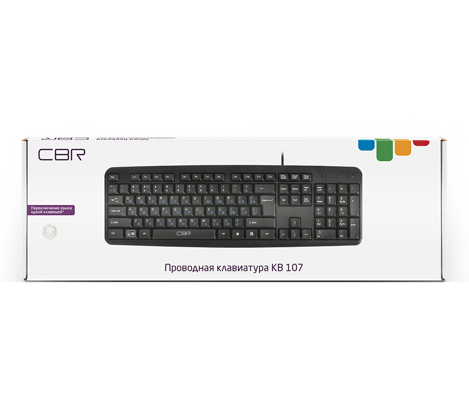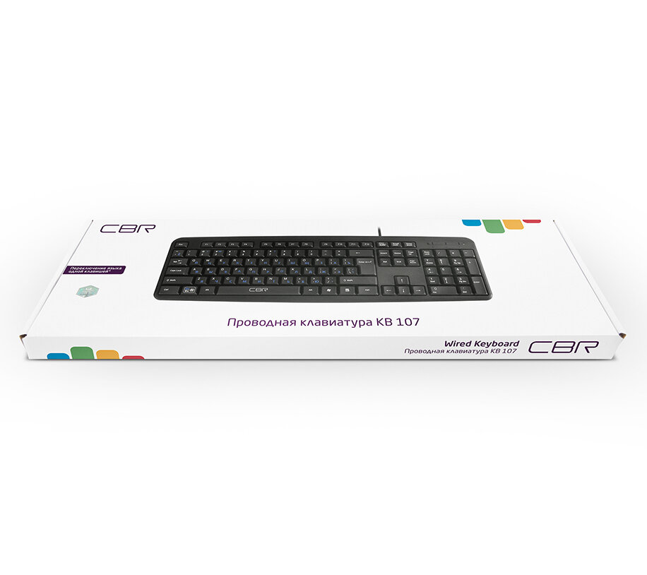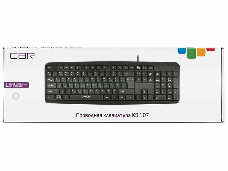 Клавиатура CBR KB 107, 107 кл., офисн., провод 1,4м, переключение языка 1 кнопкой (софт), USB