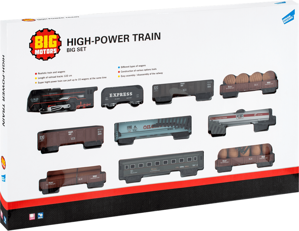 Железная Дорога Big Motors (локомотив, 9 вагонов, длина пути 122см, в коробке, от 3 лет) 19033-8, (S
