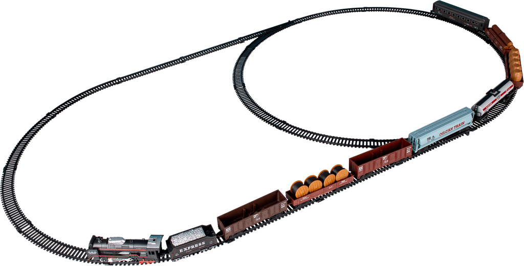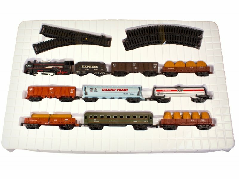 | Дополнительная информация | паровоз с тендером, закрытый грузовой вагон, открытый грузовой вагон с катушками, вагон с углем, две цистерны, открытый вагон с бревнами, пассажирский вагон, открытый вагон с бочками |