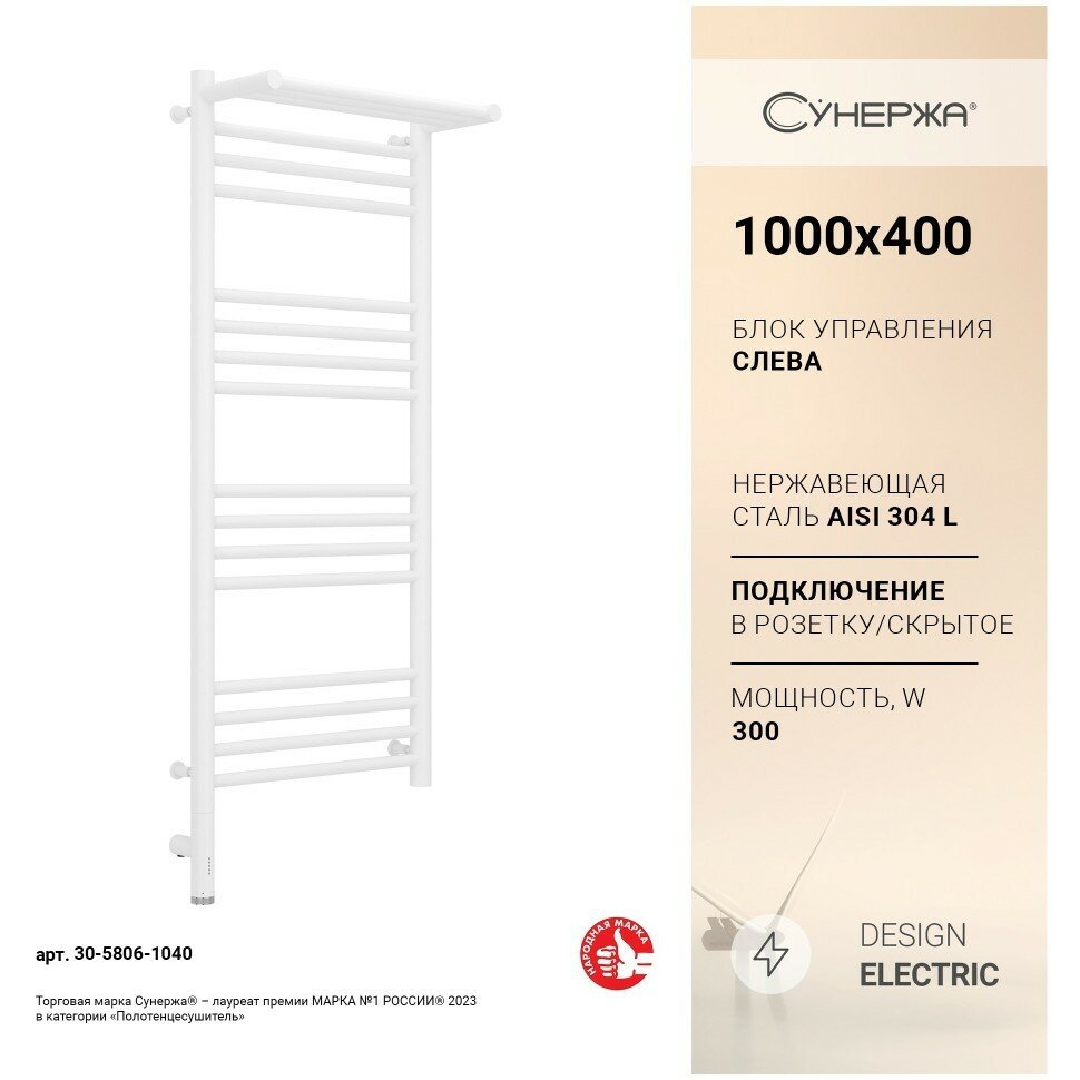 Полотенцесушитель электрический 1000х400 белый матовый МЭМ левый Сунержа Богема с полкой 3.0 30-5806-1040