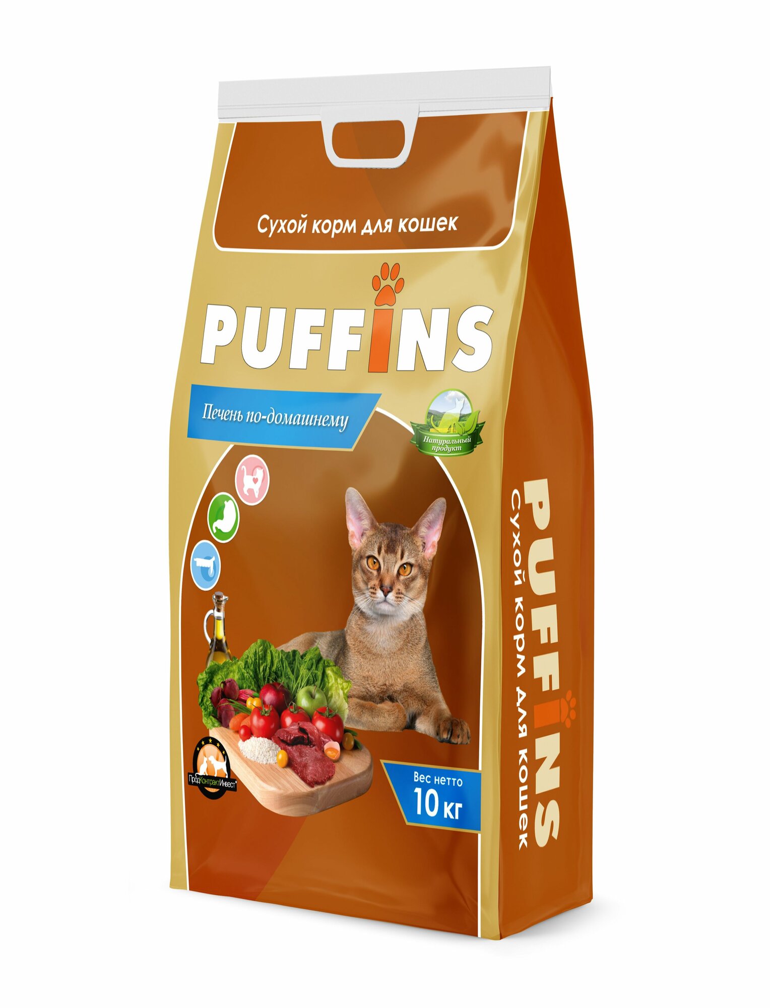 Сухой корм Puffins для кошек, печень по-домашнему, 10 кг