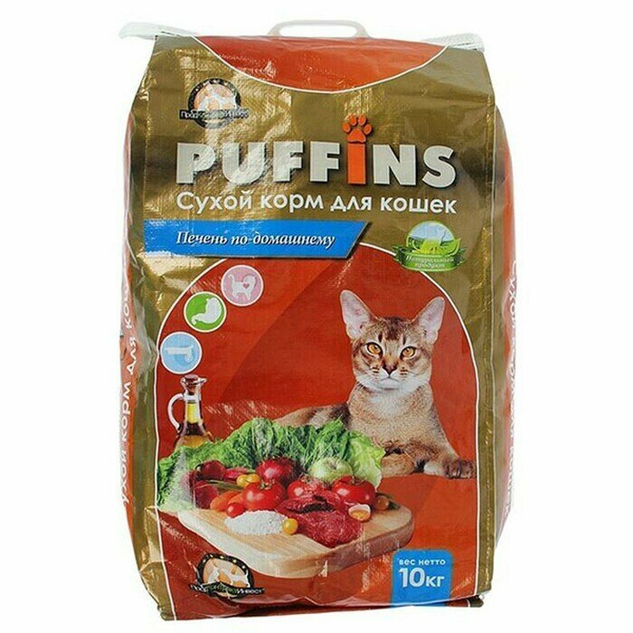 Сухой корм Puffins для кошек, печень по-домашнему, 10 кг 1461466