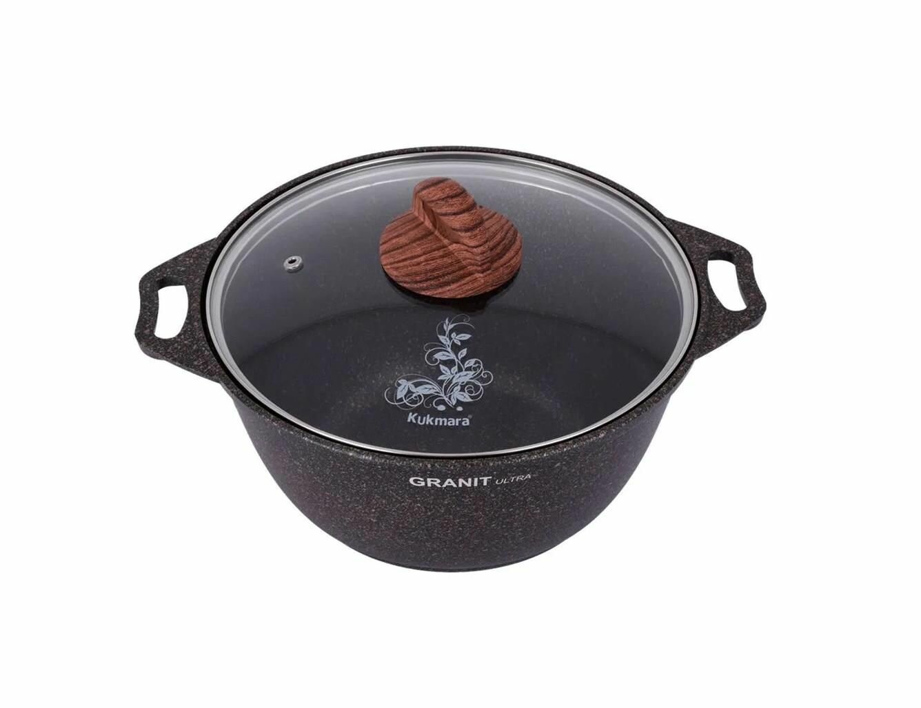 Кастрюля индукционная Kukmara 4 л, Granit Ultra Induction original, стеклянная крышка 24 см, алюминий, кгои42а