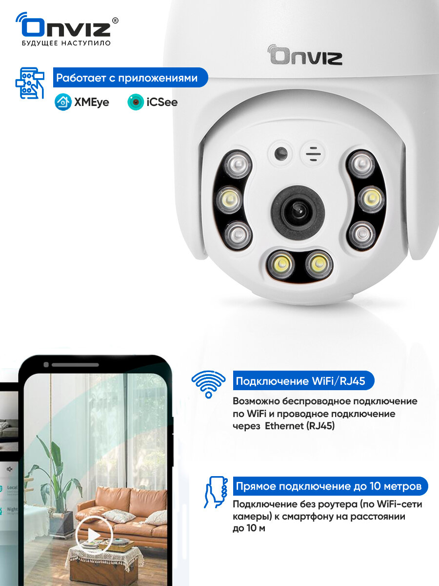 Купольная поворотная IP WiFi 8Мп камера видеонаблюдения OnvizU70, беспроводная уличная камера видеонаблюдения