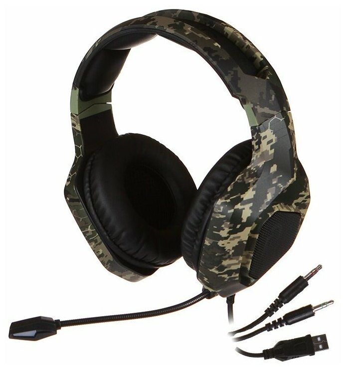 Игровая гарнитура Perfeo RETARIUS (PF_B4180) камуфляж 2,2 м, разъем 3,5 мм (4 pin) и USB (LED), переходник склад