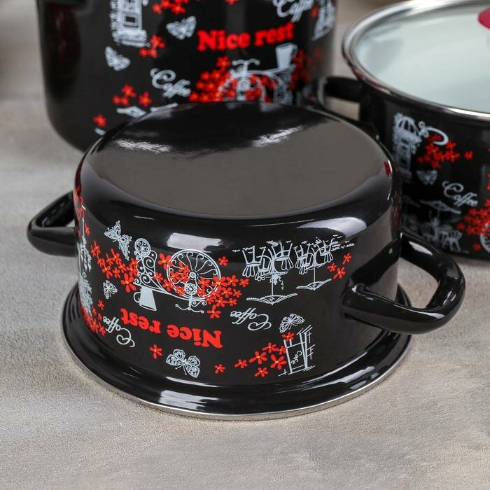 Набор эмалированных кастрюль "Отдых-5", 3 предмета: 1.9 л, 2.5 л, 5 л, индукция