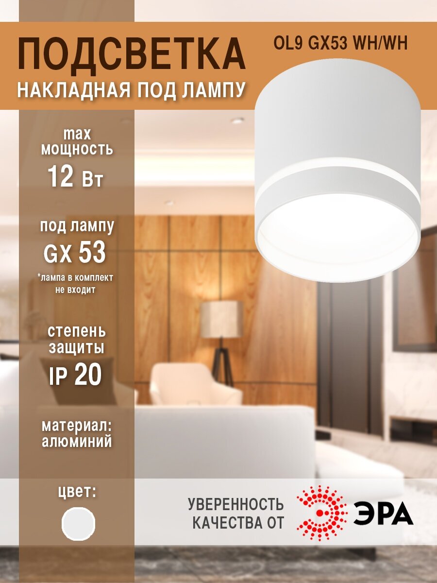 СохранитьСветильник ЭРА OL9 GX53 WH/WH под лампу Gx53, алюминий, цвет белый+белый интересное: