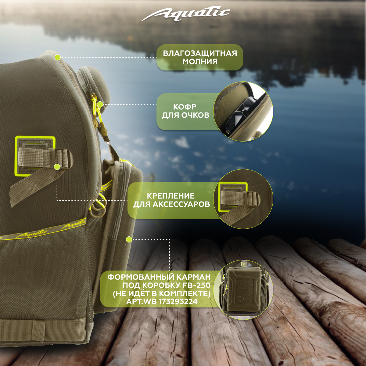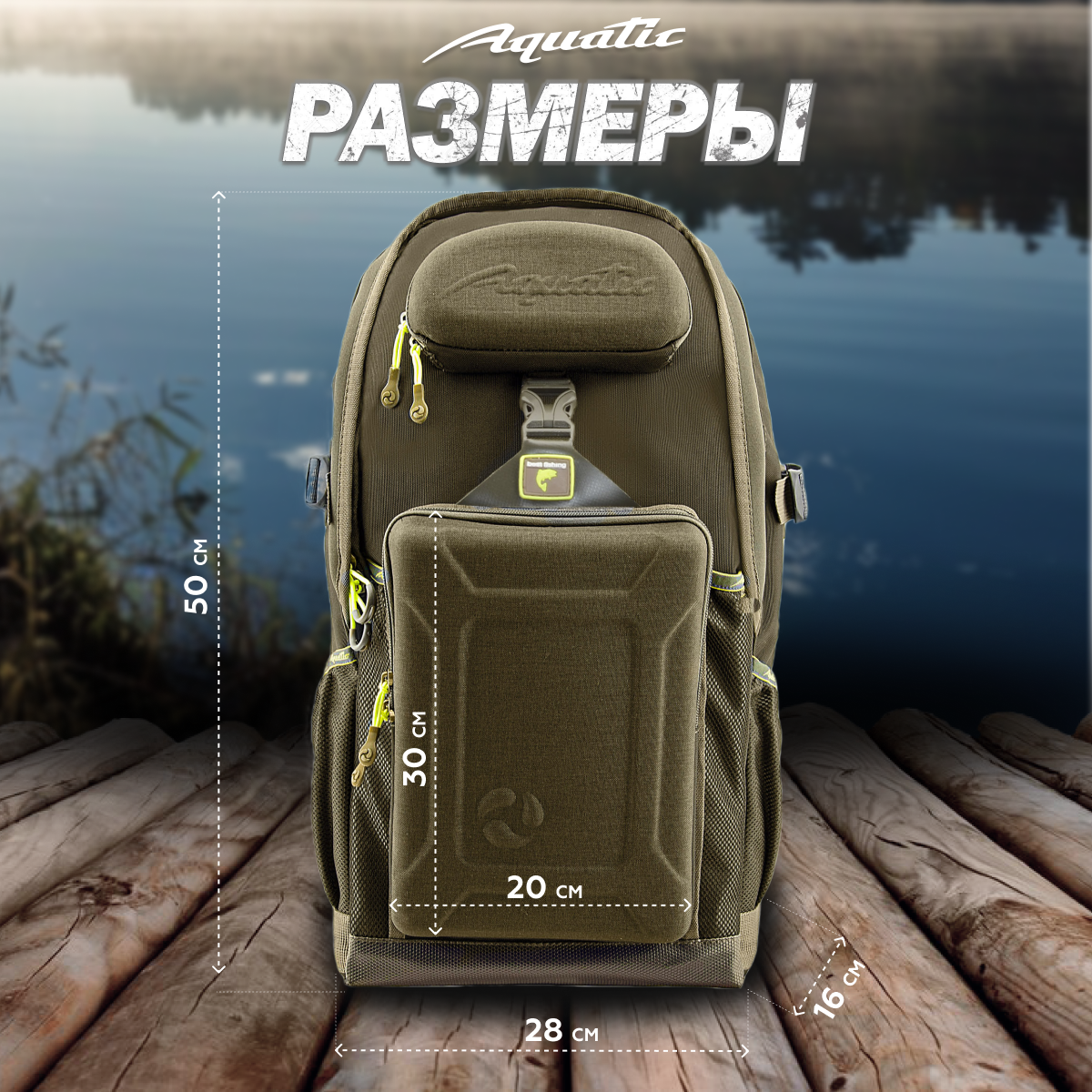 Акватик Рюкзак мужской походный для рыбалки, для охоты с жесткими карманами 40 л, цвет: хаки
