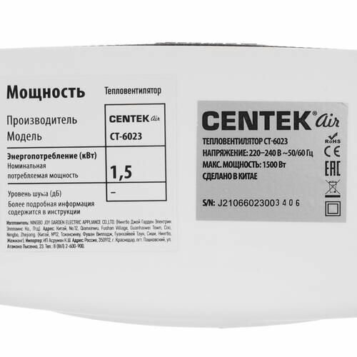 Купить Centek Тепловентилятор Centek CT-6023, керамический, настольный, 1500 Вт, 15 м², серый