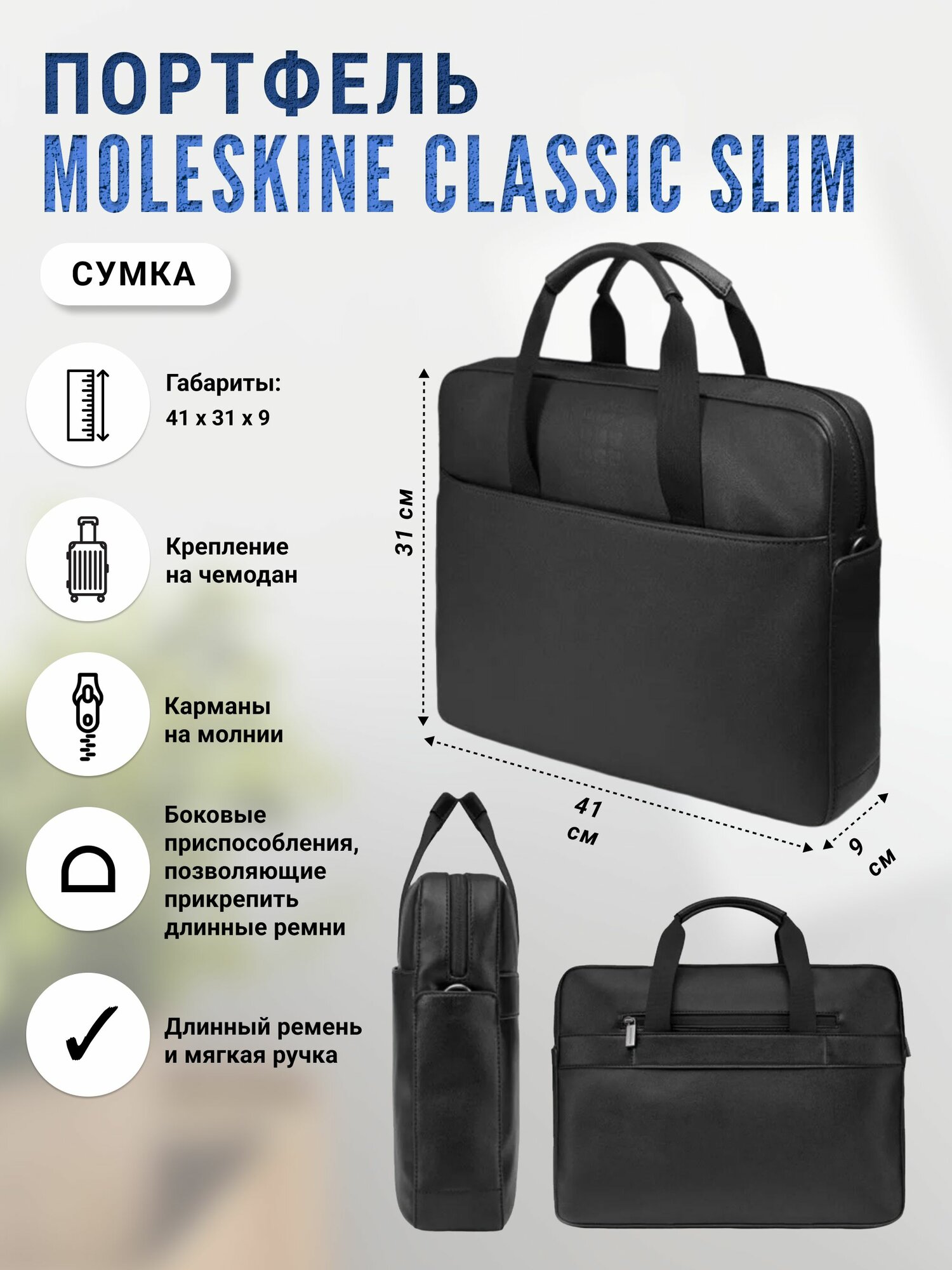Сумка (портфель) Moleskine Classic Slim, 41 х 31 х 9 см, черная интересное: