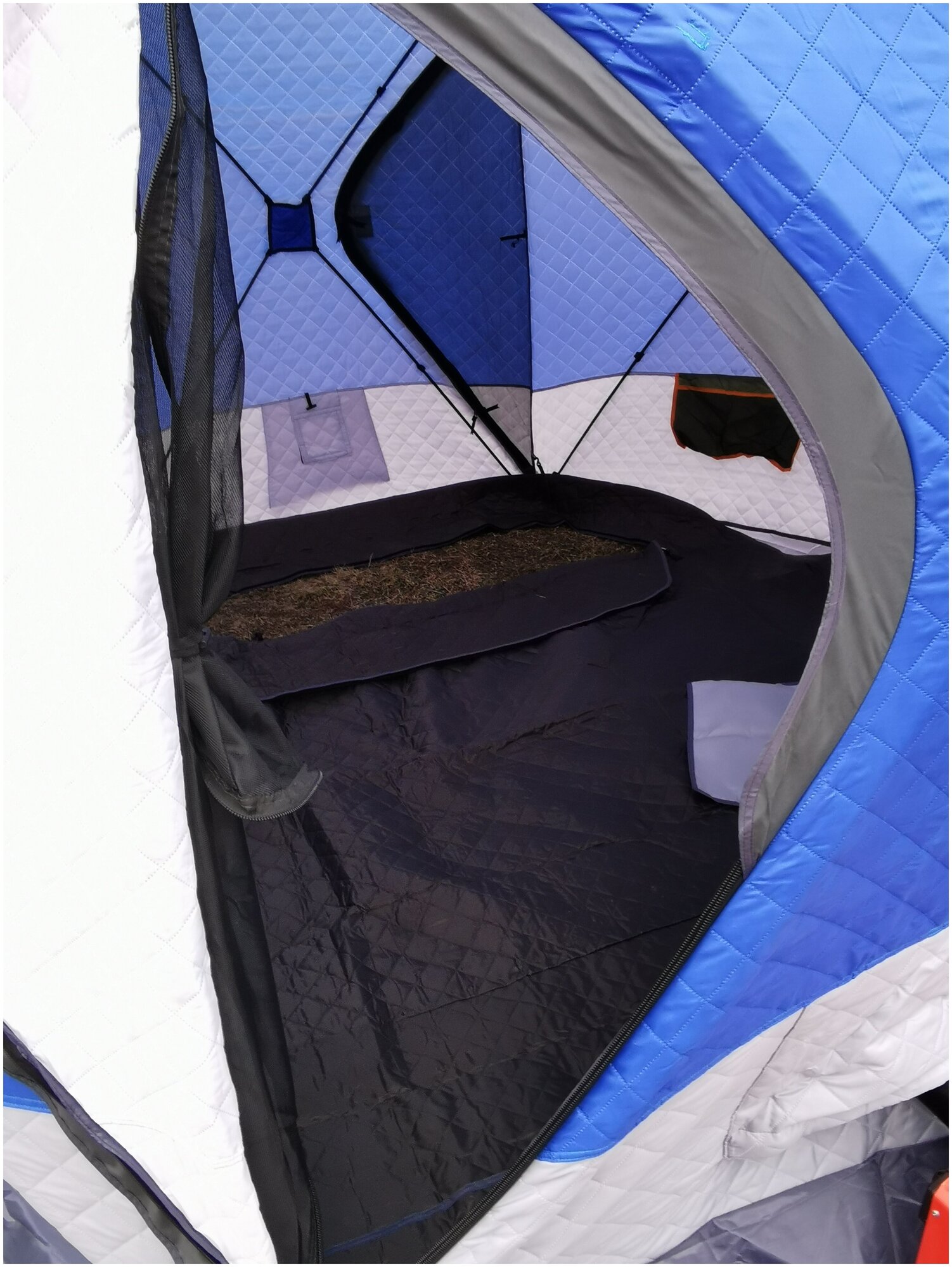 Утепленная зимняя 3 слойная палатка для рыбалки Terbo-Mir Куб 2, шестиугольная, размеры 3х3х2,05 м, сине-белая