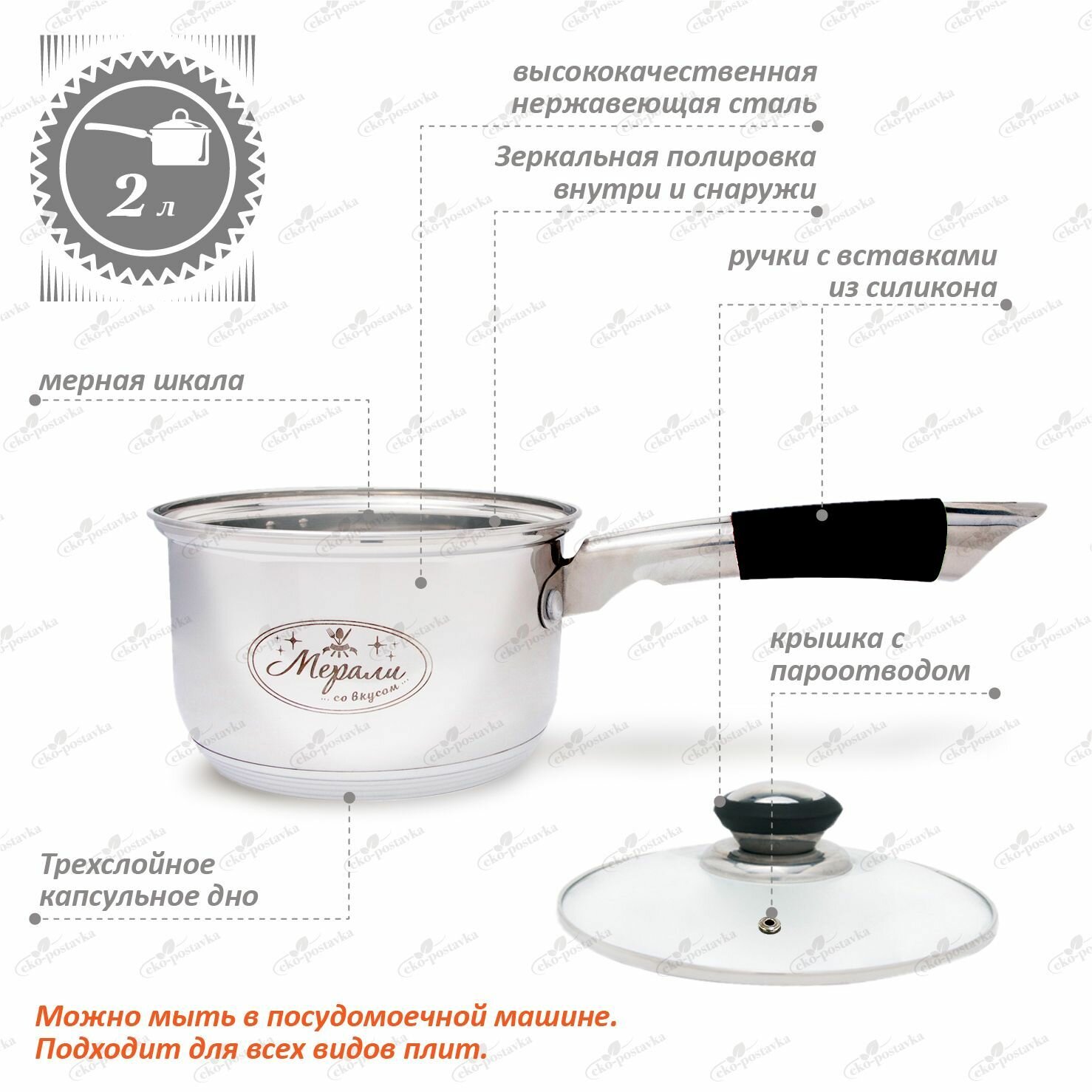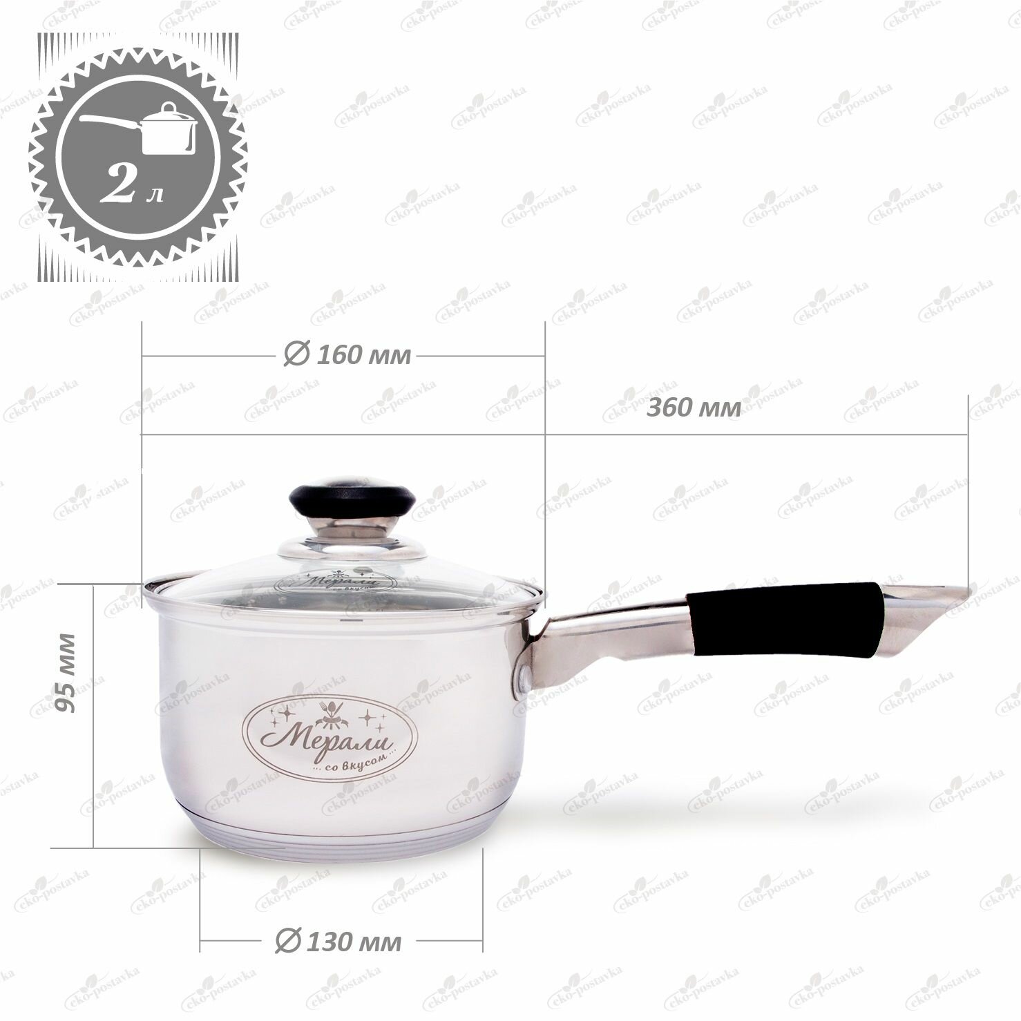 СохранитьКовш кухонный с крышкой Мерали 2 л из нержавеющей стали для газовой электрической и индукционной плиты интересное: