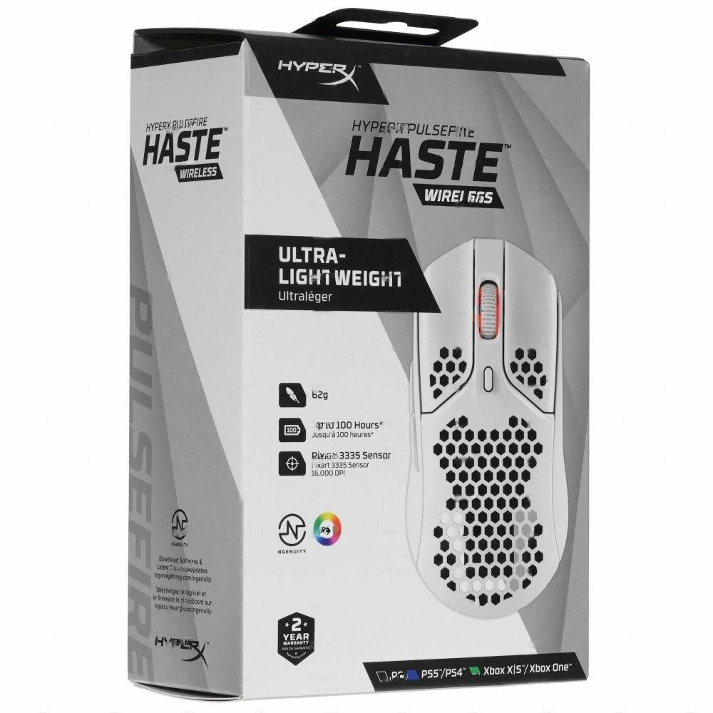 Мышь HYPERX Pulsefire Haste Wireless, проводная, USB, белый (4P5D8AA)