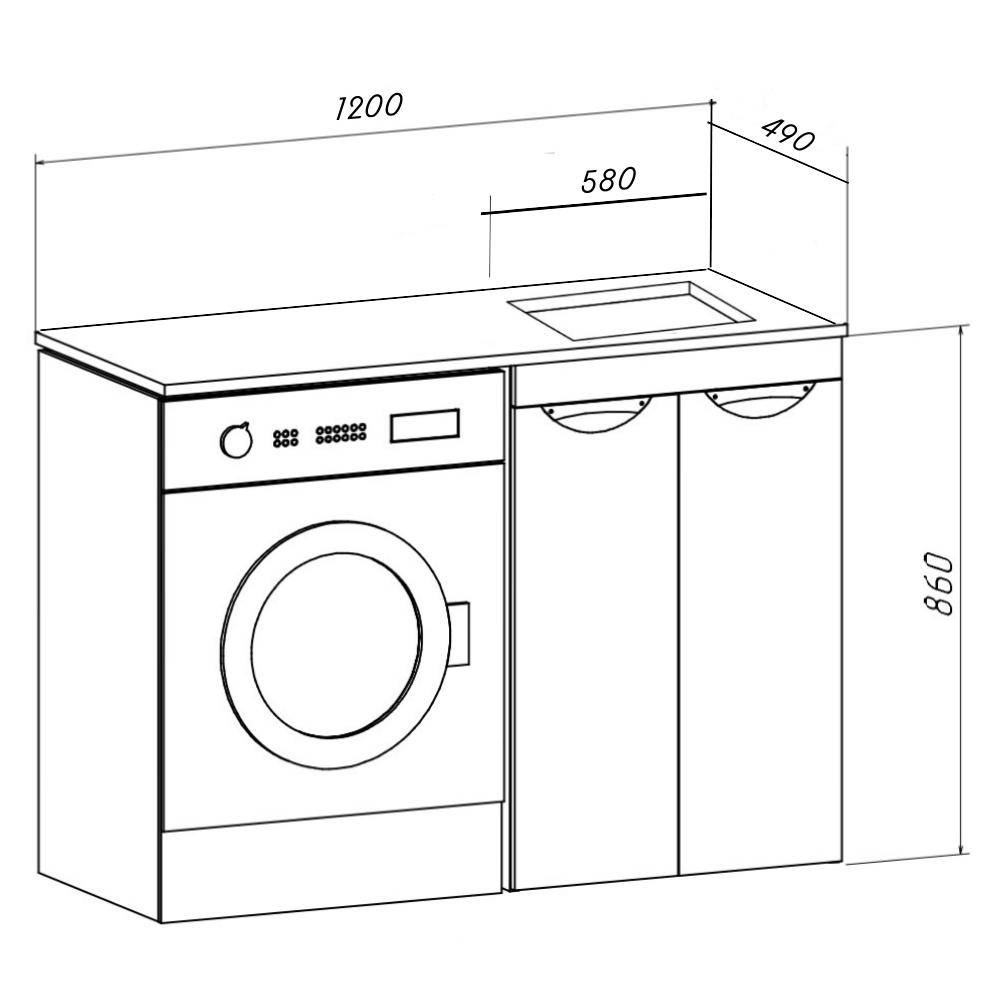 Тумба с раковиной напольная Орион 60, белая (раковина Gamma 120 левое крыло, с кронштейном)