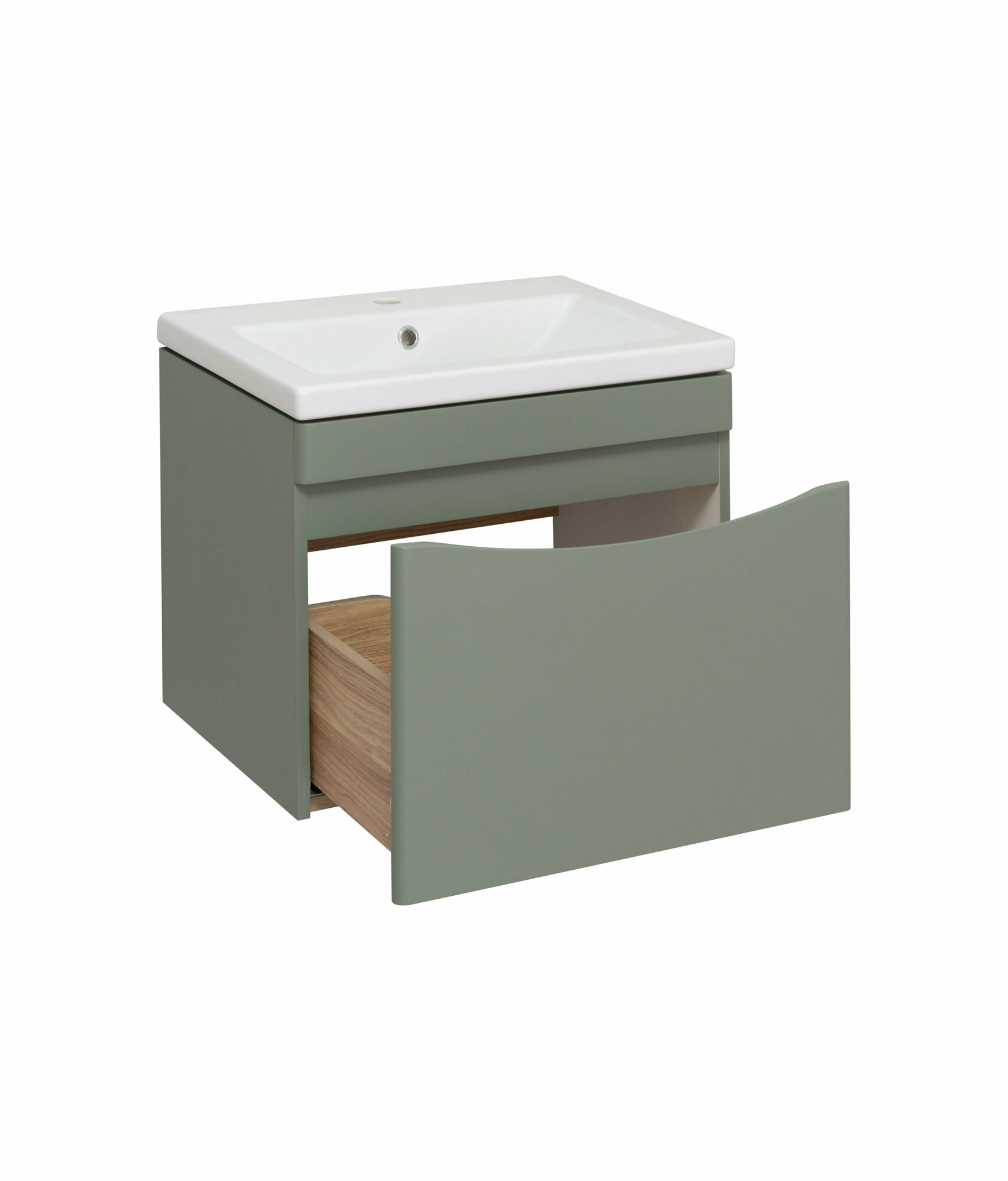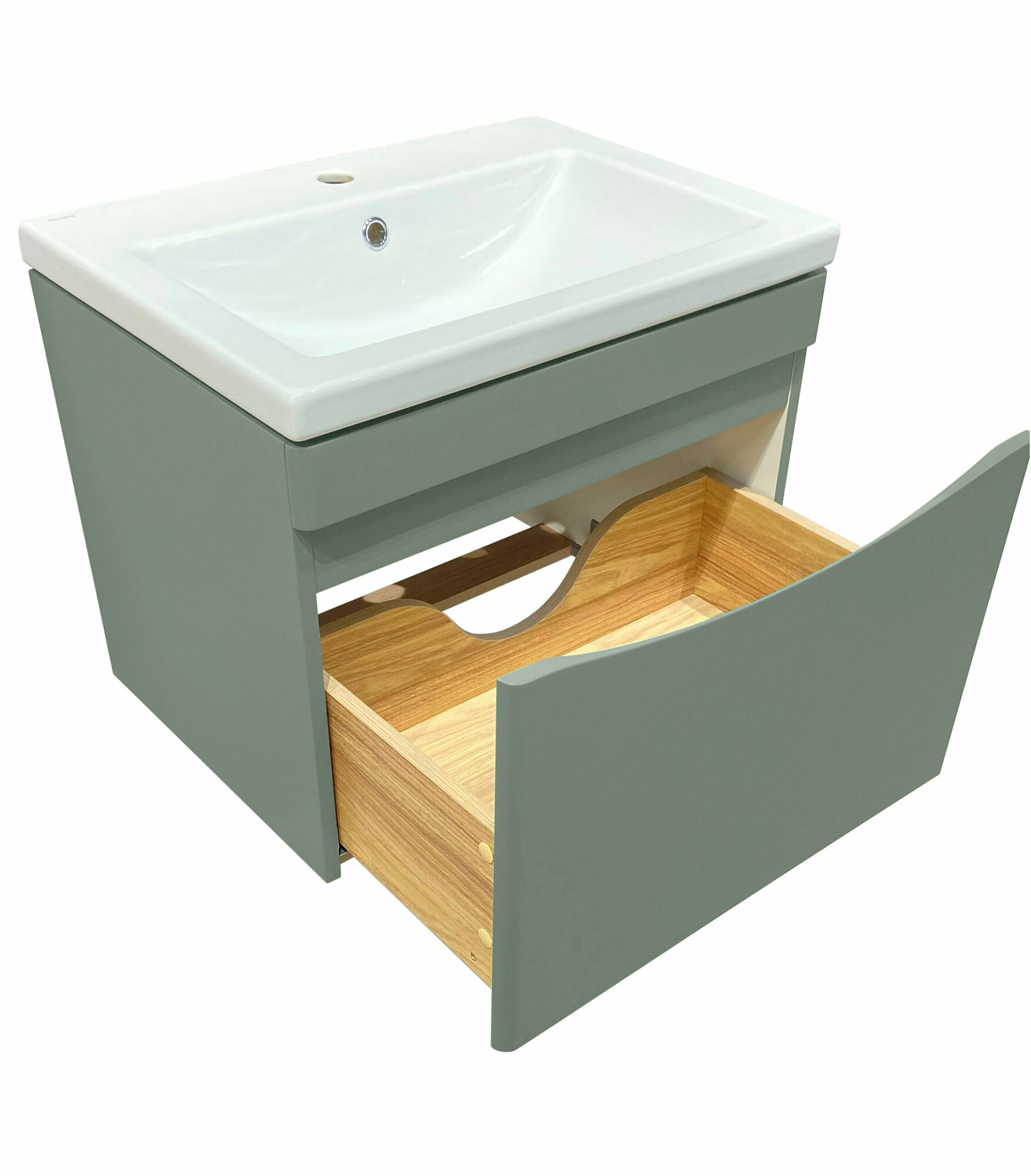 Купить Тумба с раковиной подвесная Афина 60, эмаль, цемент (раковина Moduo)