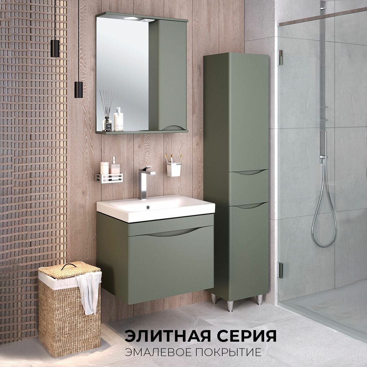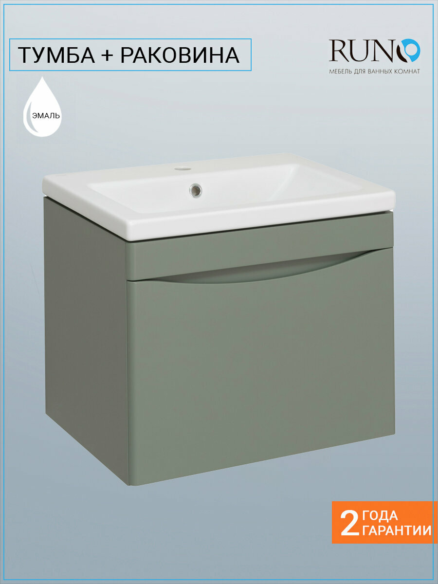 Тумба с раковиной в ванную Runo Афина 60 подвесная / эмаль / цемент / с умывальником Moduo 60