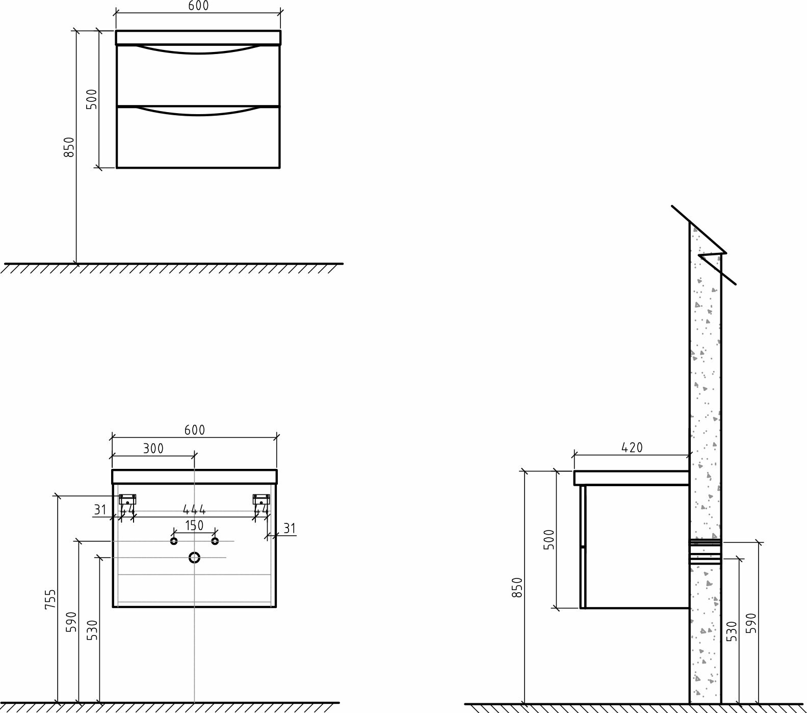 Тумба-умывальник Comforty Осло 80 бетон светлый с раковиной Fest 80