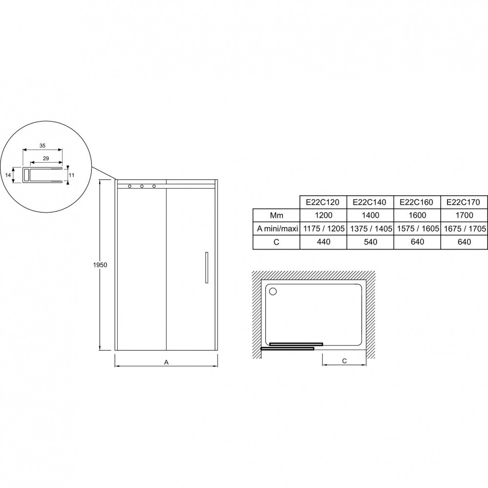 Душевая дверь Jacob Delafon Contra 170x195 E22C170-BL интересное: