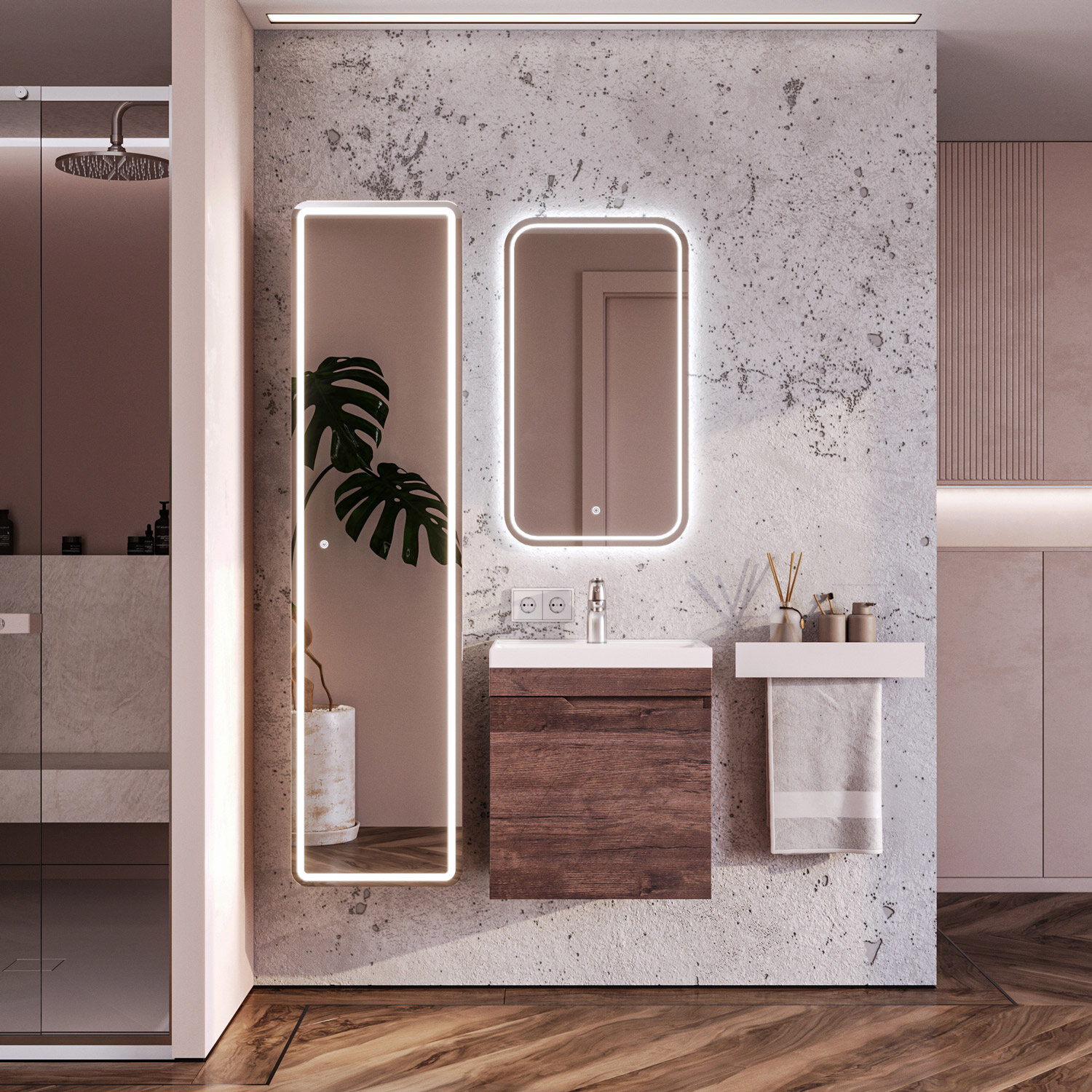 Тумба с раковиной в ванную / Тумба для ванной / Раковина с тумбой для ванной Итана Alexa 50 493х343х570 левый Акация тёмная подвесная