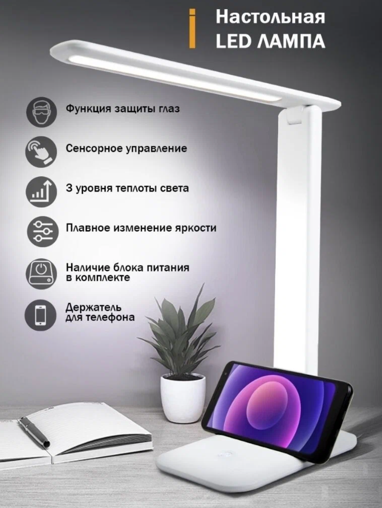 Настольная светодиодная рабочая лампа, с диммированием, белый интересное: