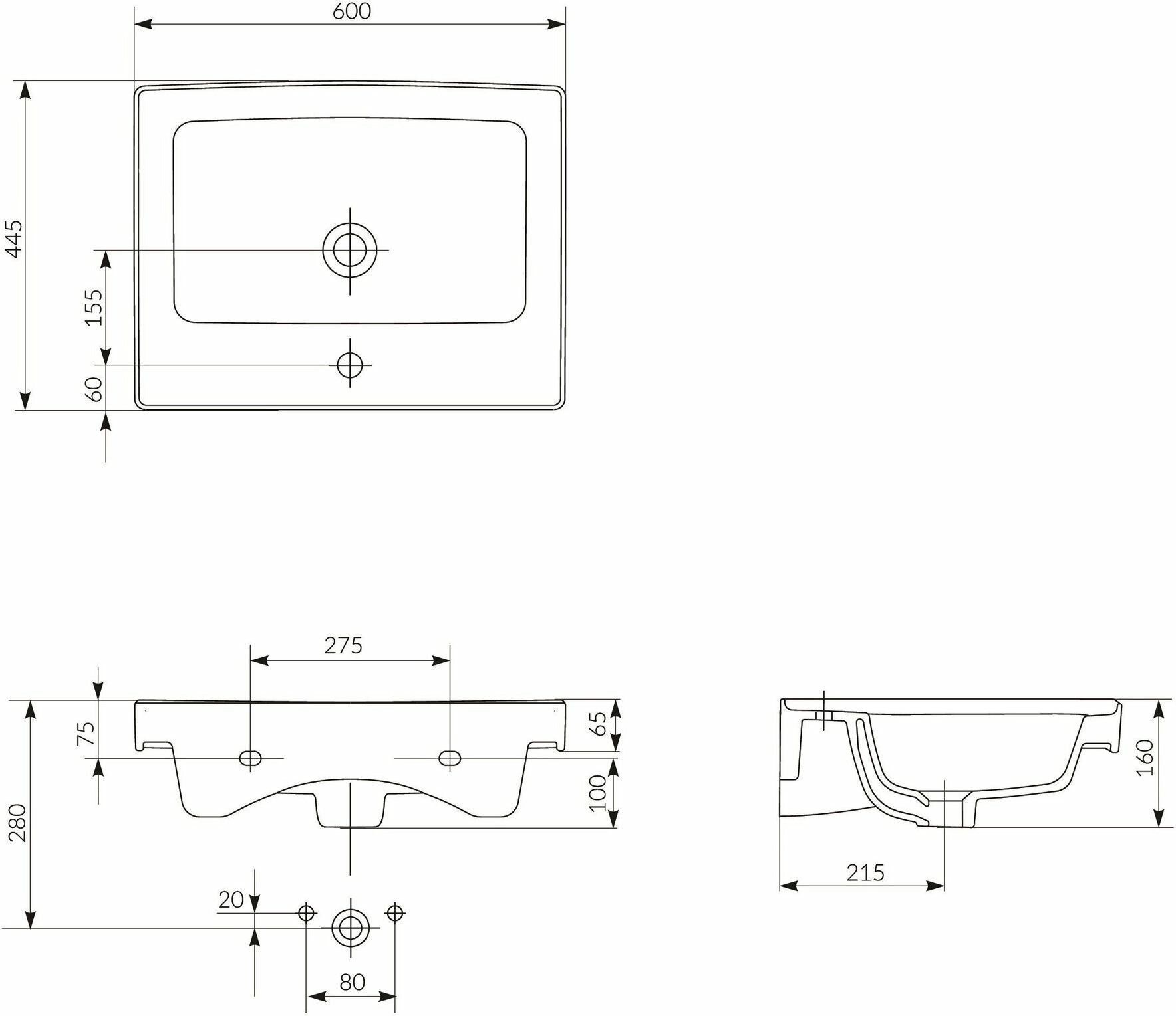 Раковина встраиваемая CREA 60, 1 отв., белый, P-UM-CRE60/1 интересное: