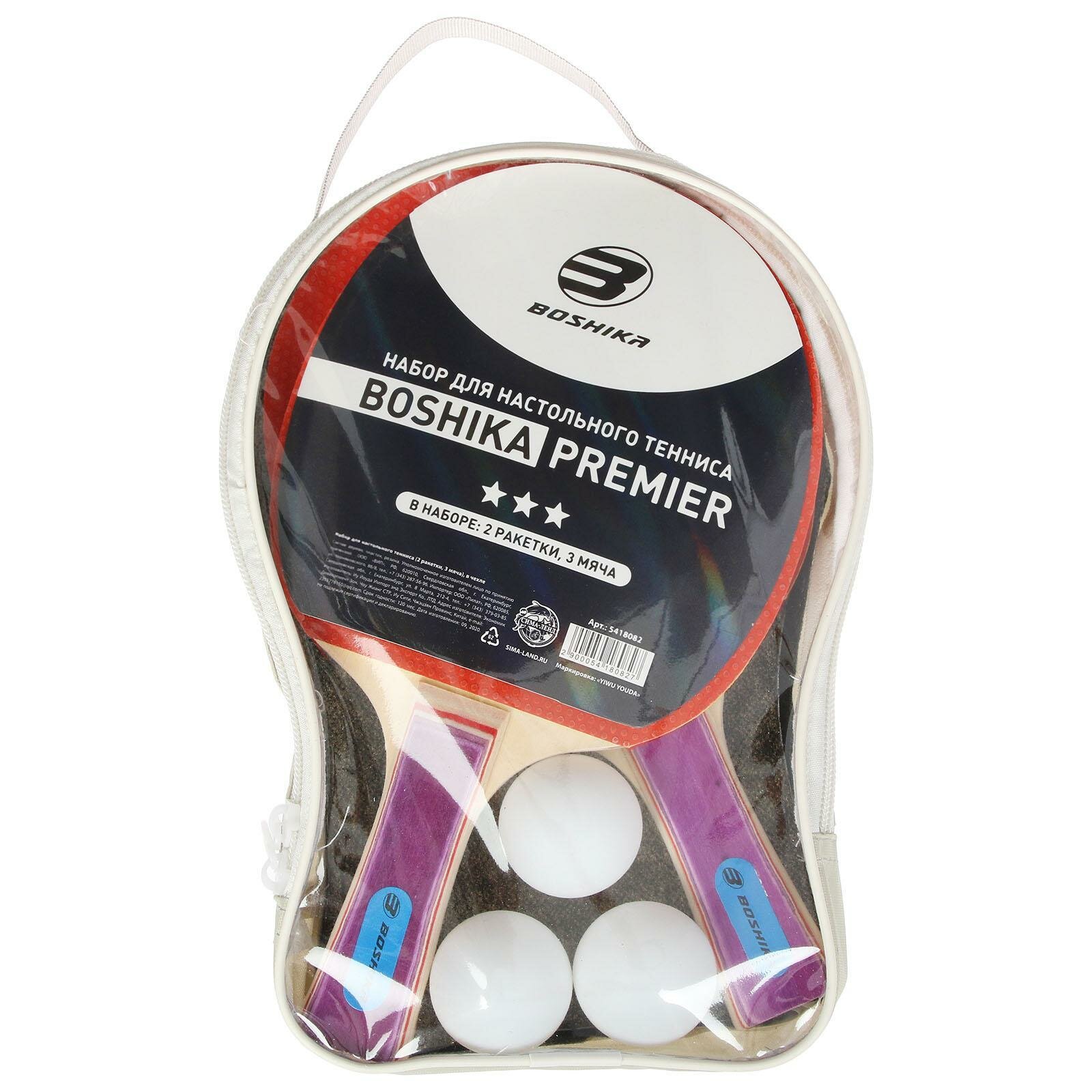 Набор для настольного тенниса Boshika Premier, (2 ракетки, 3 мяча), в чехле интересное: