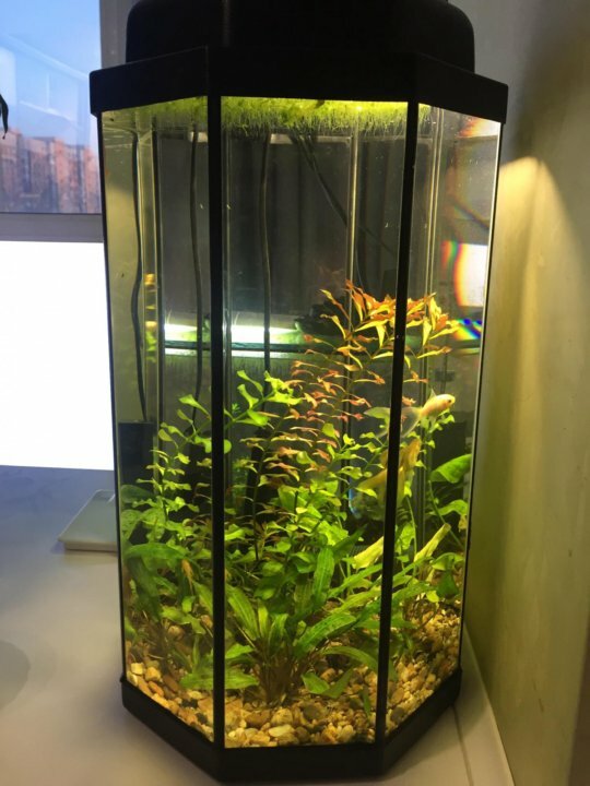Аквариум Восьмигранный с Крышкой патроном Е14,24 литра, 25 х 25 х 46/50 см,Швы аквариума с Прозрачным Герметиком интересное: