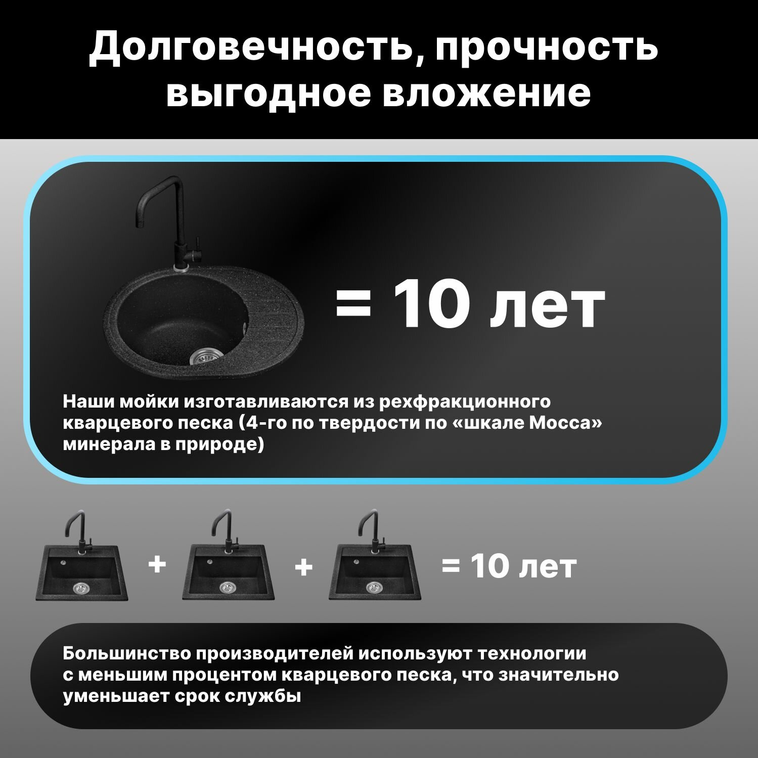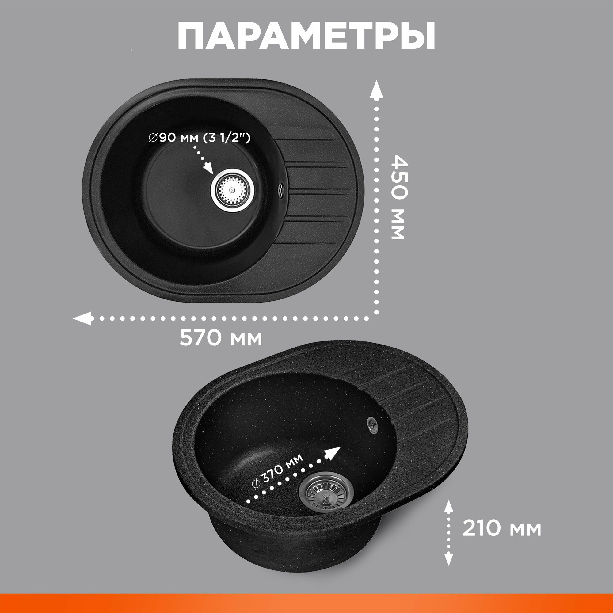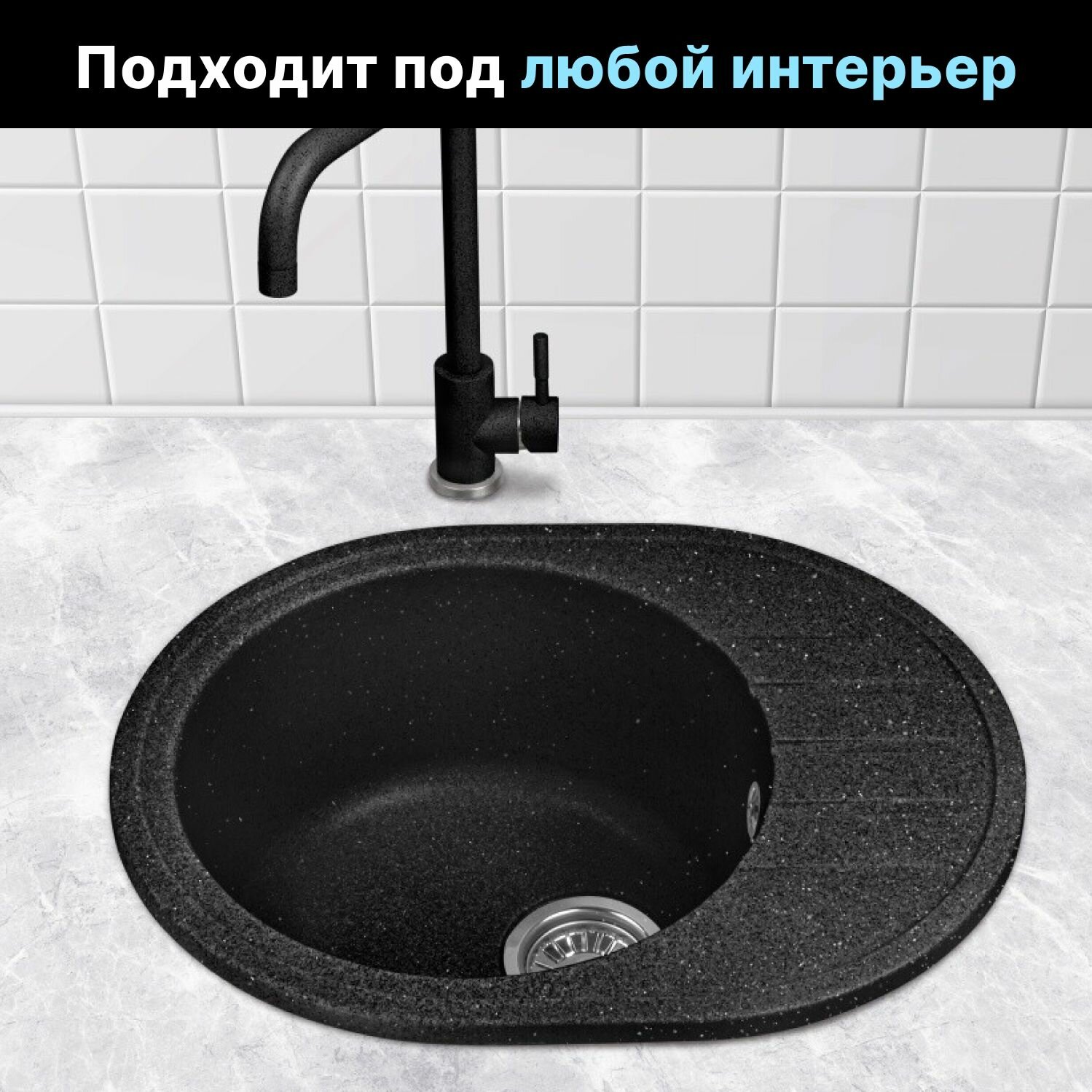 Мойка для кухни каменная врезная черная круглая AV ENGINEERING Richi (AV510510RBKA)