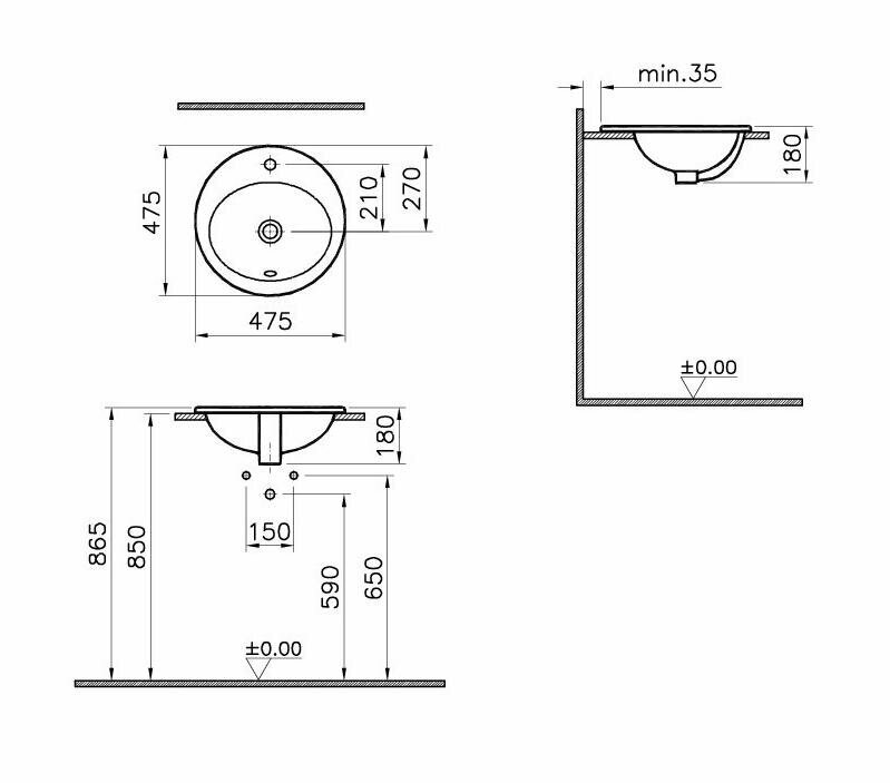 Раковина Vitra S20 (475х475х180) встраиваемая, с отверстием под смеситель, белая 5467B003-0001