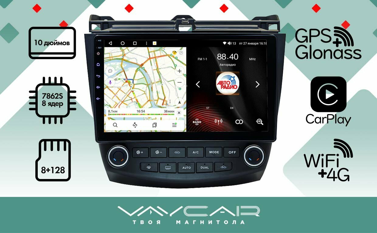 Купить Магнитола Vaycar 10VO8 для HONDA Accord 2002-2008 Андроид, 8+128Гб