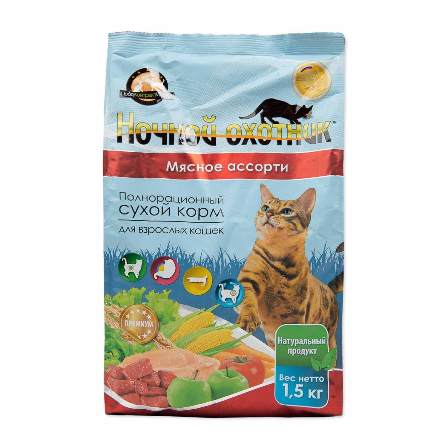 Сухой корм ночной охотник для взрослых кошек с мясным ассорти (1,5 кг)