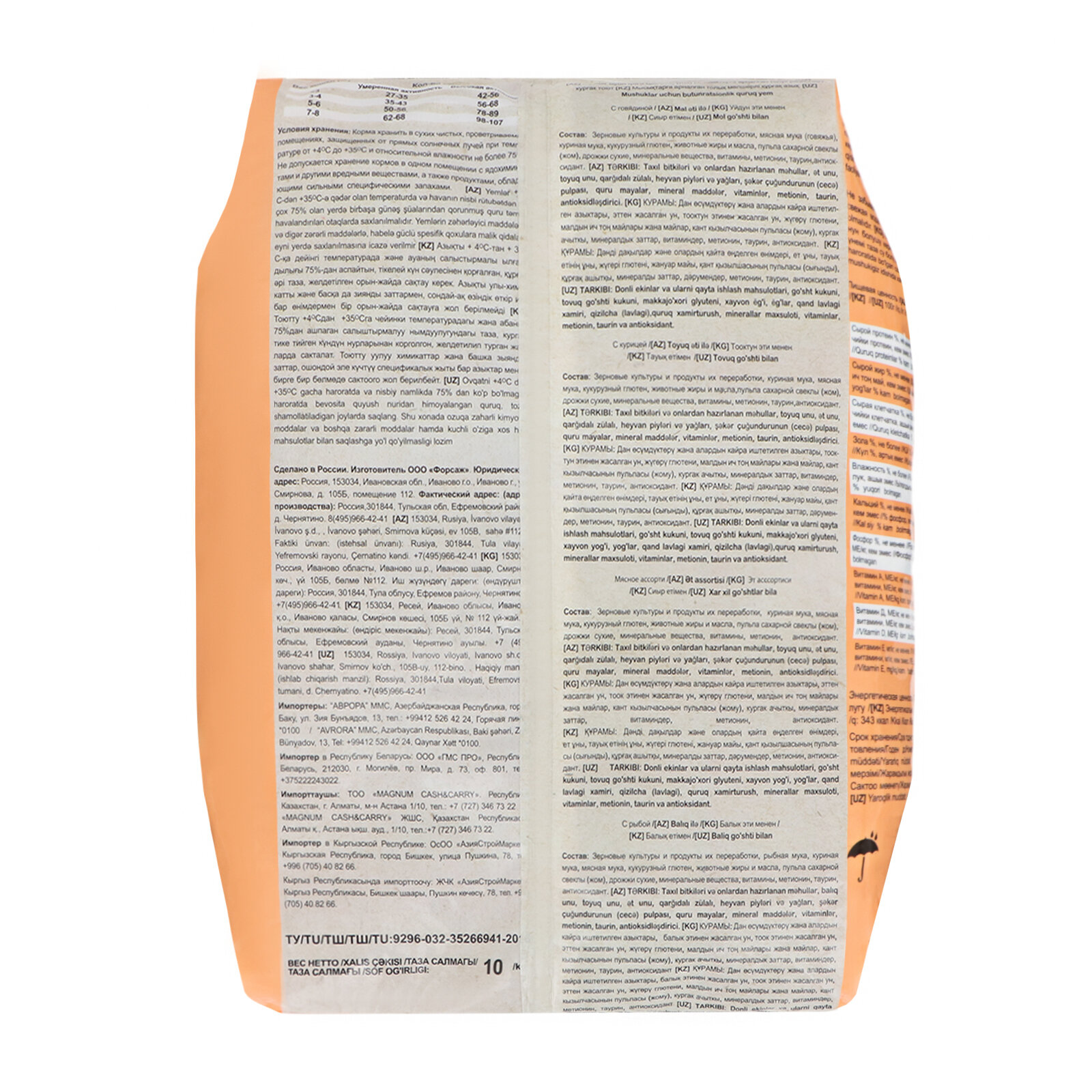 | Состав | зерновые культуры и продукты их переработки, мясная мука, куриная мука, рыбная мука, кровяная мука, дрожжи пивные, рыбий жир, свекольный жом, витамины, микроэлементы, аминокислоты, антиоксидант |