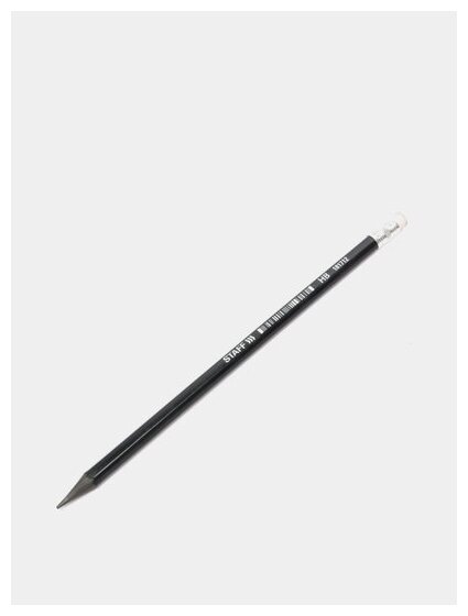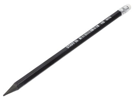Карандаш чернографитный STAFF "College", 1 шт., НВ, с ластиком, пластиковый, корпус черный, 181712