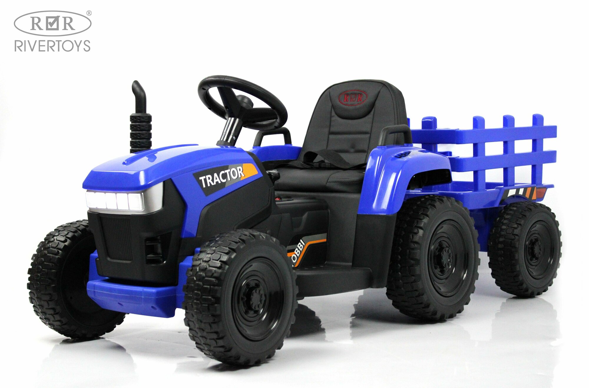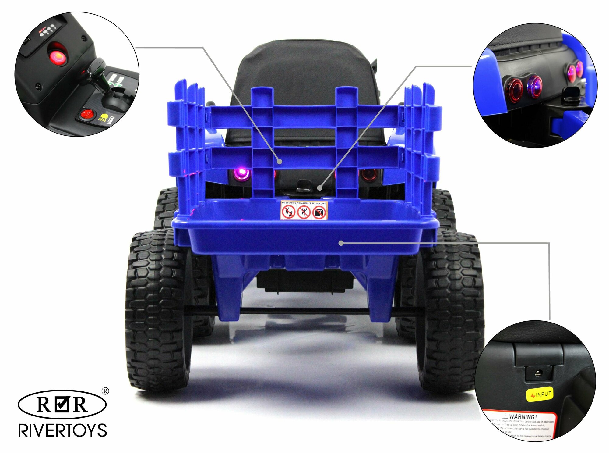 Детский электромобиль трактор Rivertoys H888HH синий с дистанционным управлением